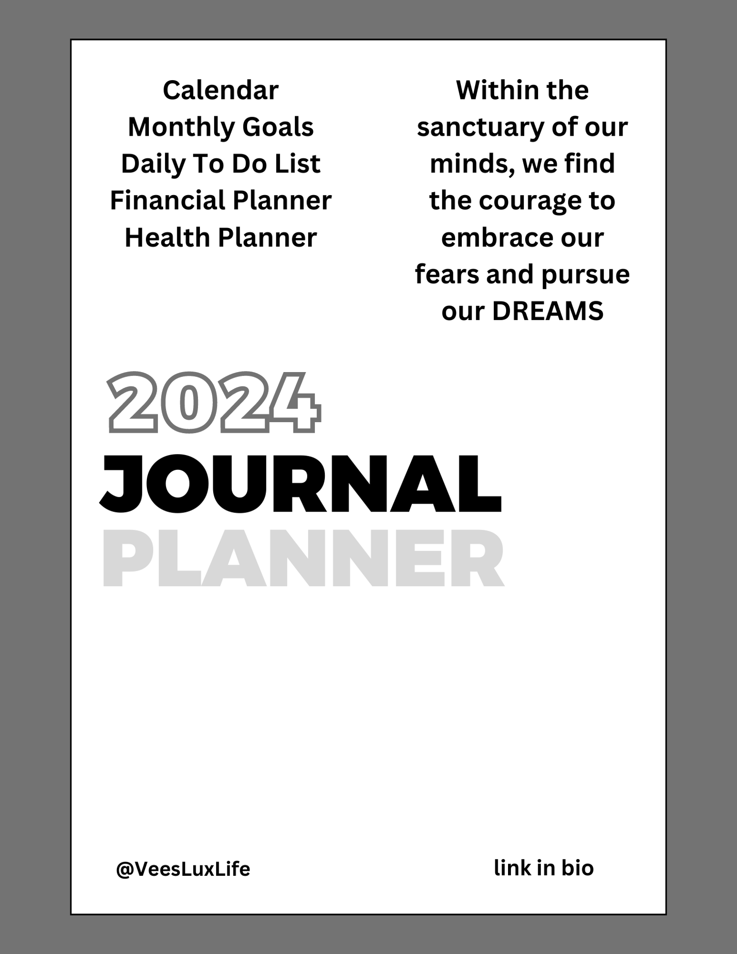 Step into the sanctuary of your mind and embark on a transformative journey towards personal growth and empowerment with "Mindful Dreams: A 2024 Journal Planner." This beautifully designed planner invites you to explore the depths of your thoughts and aspirations while cultivating the courage to embrace your fears and pursue your dreams.