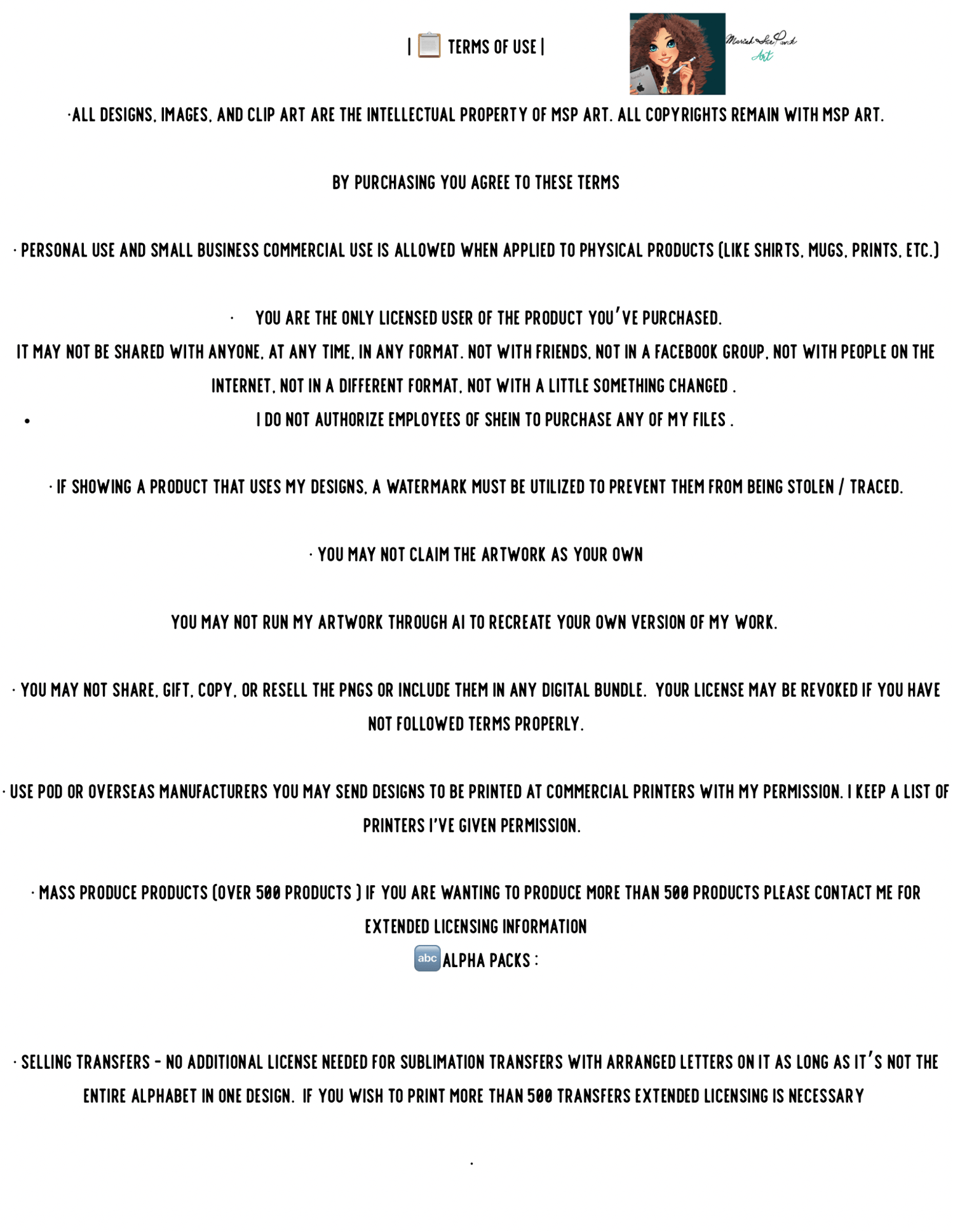 All designs, images, and clip art are the intellectual property of MSP ART. All copyrights remain with MSP Art.