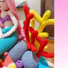 Yarn colors needed: light peach, turquoise, light purple, light pink, white, light grey, medium light blue, variegated yarn, orange, light green, green, yellow, red, sand color, dark brown