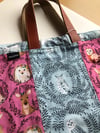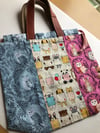 Measures between 32-35 cms by 32-38 cms, has 1 inside pocket, leather handles made from waste of shoes industry.