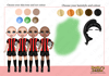 three different skin tones, three eye colours and five hair colours)