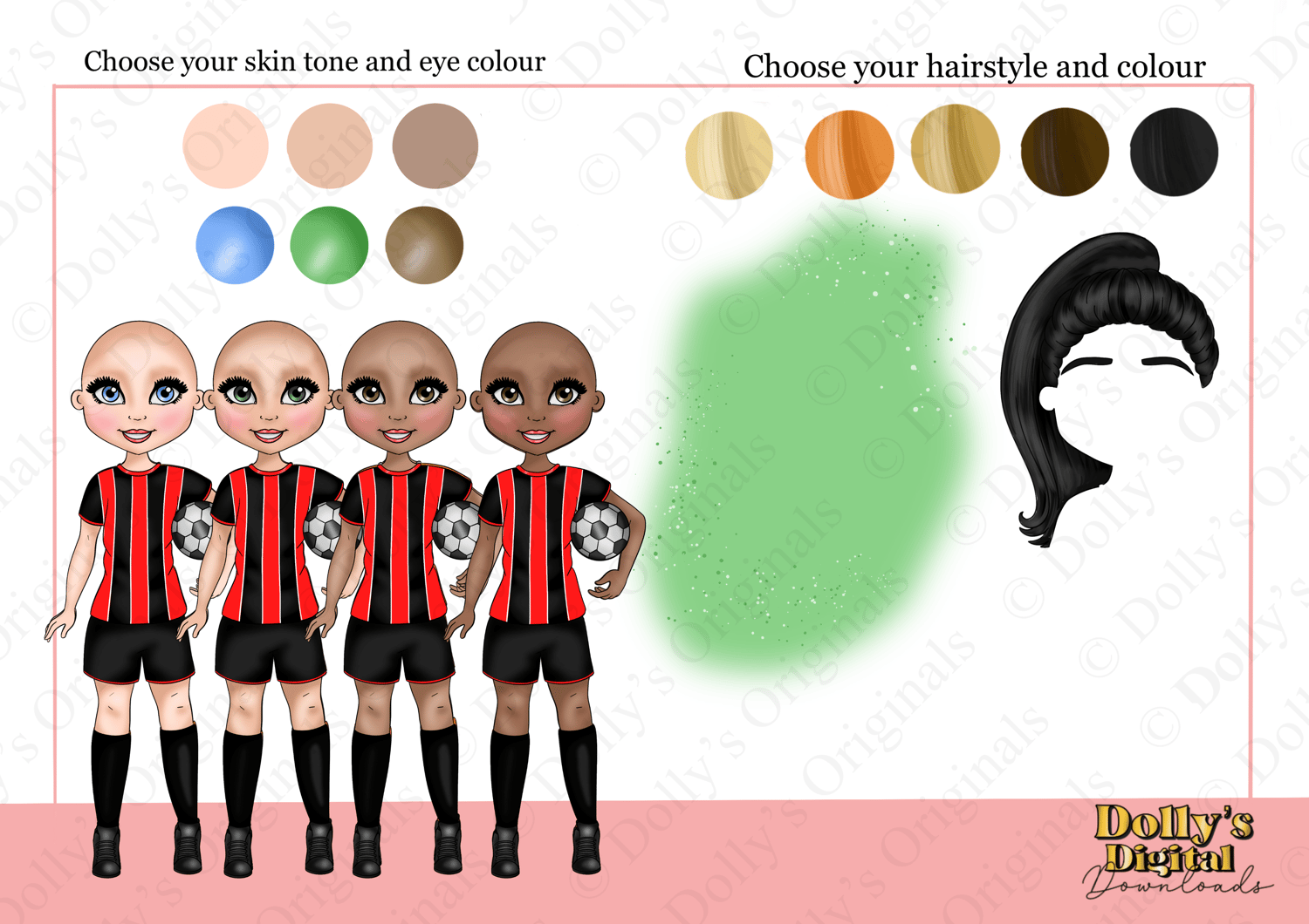 Instant digital download of our Football Girls in Red, Black and White Stripe PNG (47 PNG’s)