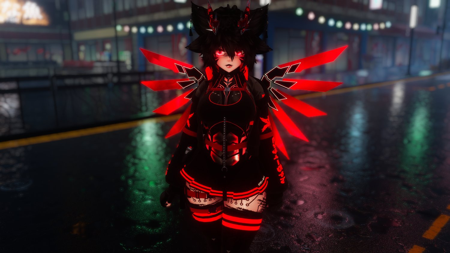 Pointer, Piercings, Wings, Face Mask, Visor, Collar, Skirt, Socks, Sleeves, Flashlight by me BeardieChan