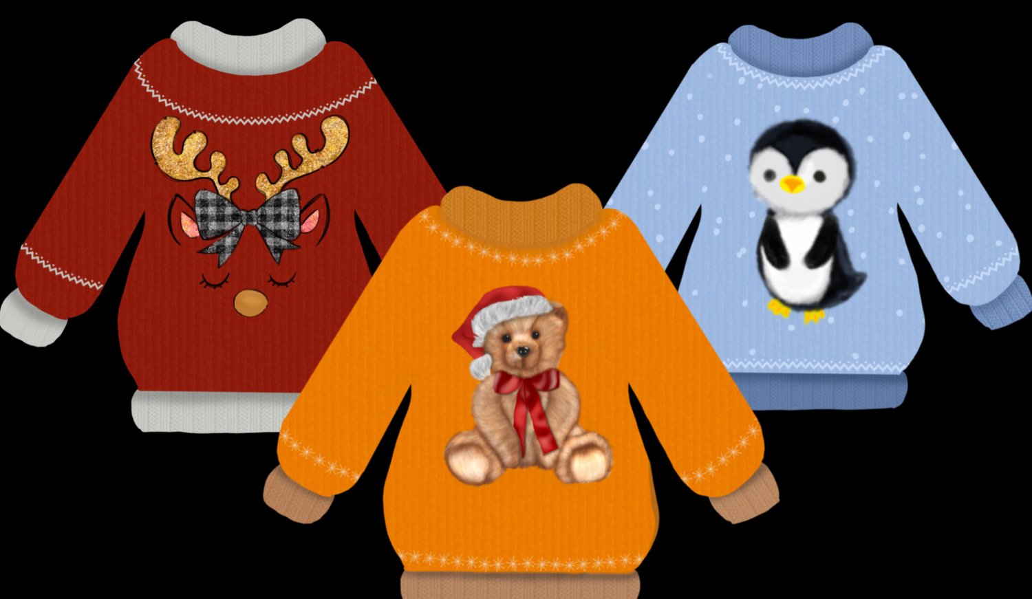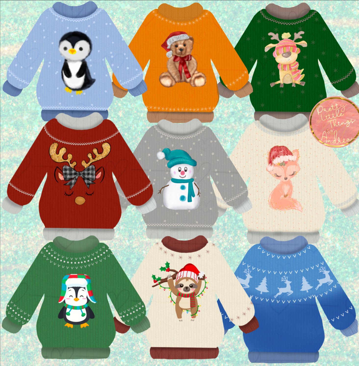 Christmas sweater, jumper bundle for sublimation or print. 9 300dpi PNGs, each with different character design.