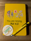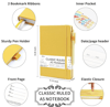 - Hard cover journal has a water-resistant faux leather cover, round corners and bookmarks