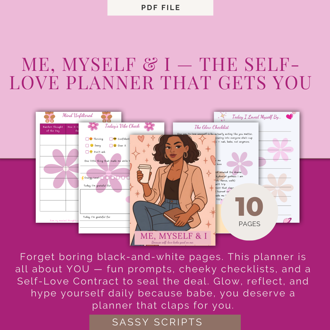 Tired of boring planners that don’t hype you up? The Me, Myself & I Self-Love Planner is your sassy sidekick for daily reflection, confidence building, and unapologetic self-care. Packed with playful prompts, gratitude pages, glow-up checklists, and even a Self-Love Contract, this digital planner helps you stay organized while falling in love with yourself all over again.