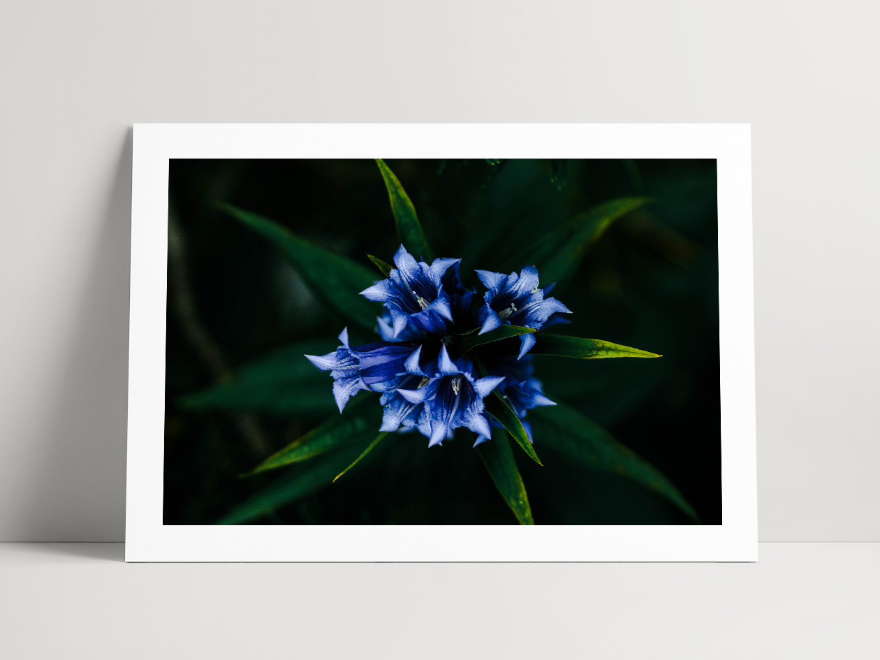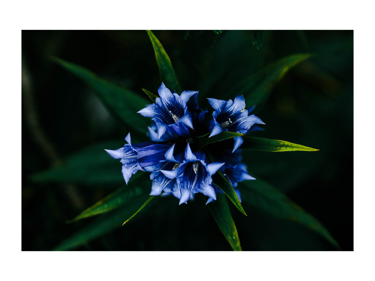 Cette photo montre une fleur de haute montagne, une Gentiane délicate aux teintes bleu profond et blanc, capturée en macro. Je l’ai prise lors d’une randonnée en Allemagne avec mes meilleurs amis, dans un paysage fascinant et inspirant. Cette photo fait partie d’une série dédiée aux fleurs de montagne, pour révéler la beauté de ces plantes, souvent discrètes, mais essentielles au fonctionnement de l’écosystème. Chaque détail de la nature a son importance, et observer ces fleurs sous cet angle m’a permis de retrouver un regard enfantin, émerveillé par ce qui semble minuscule, mais qui est en réalité grandiose.
