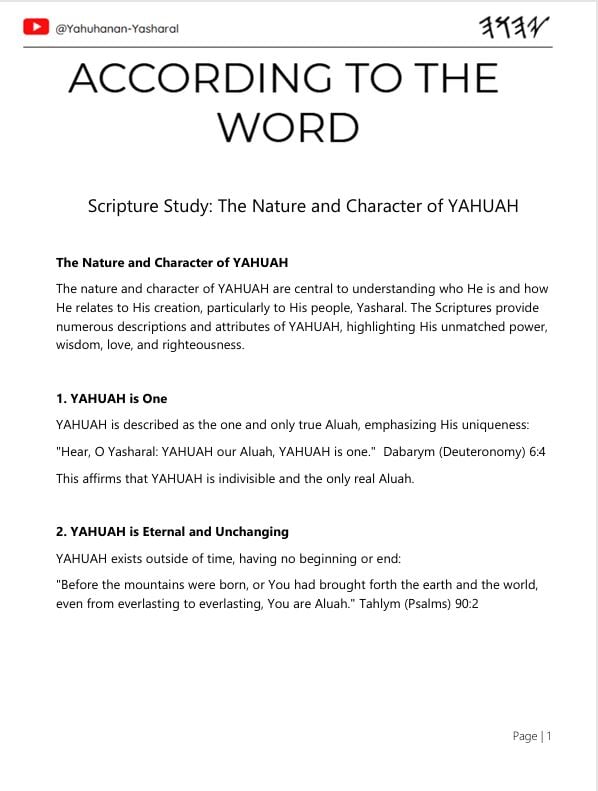 According to the Word- Scripture Study: The Nature and Character of YAHUAH