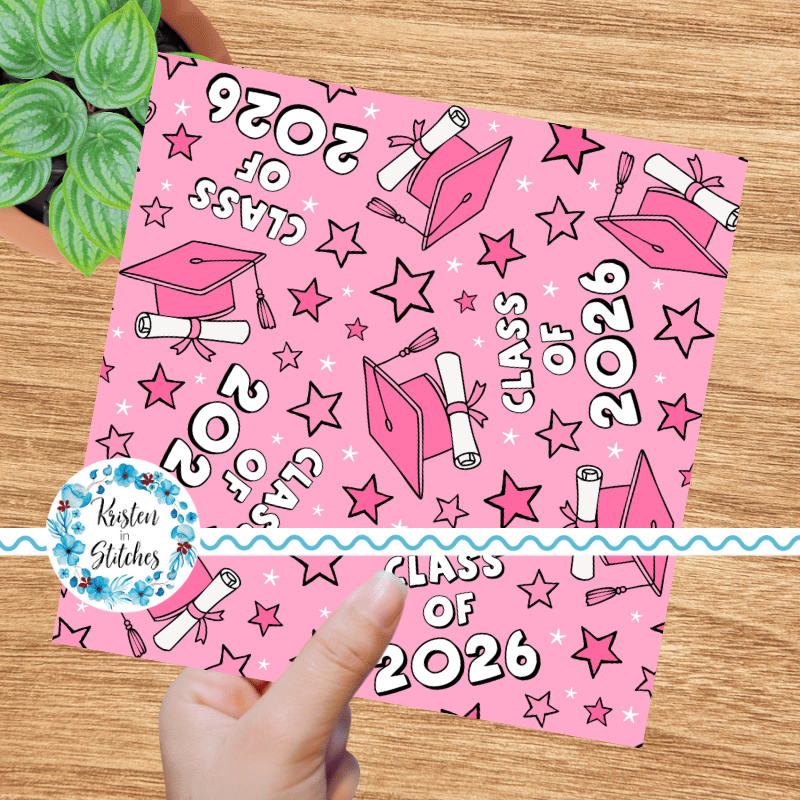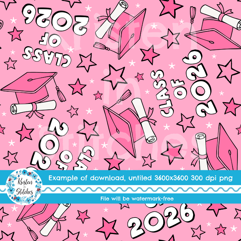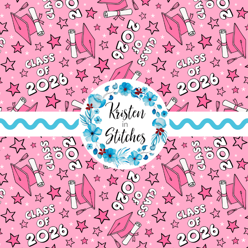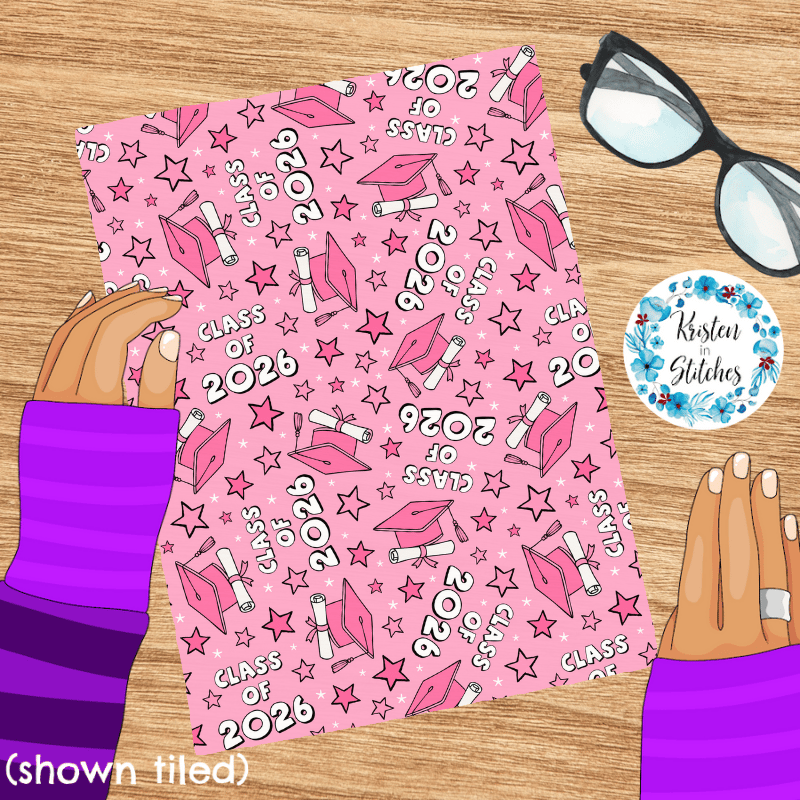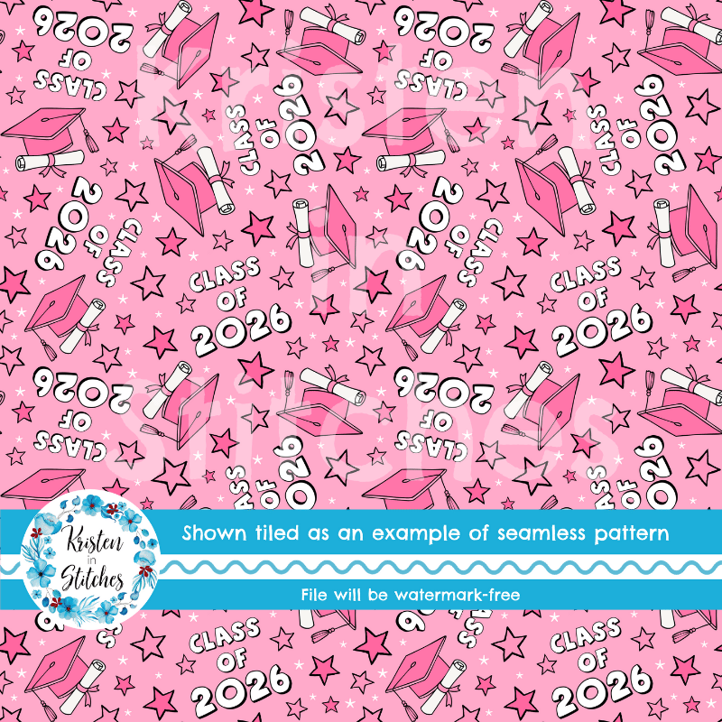 Class of 2026 Graduation Grad Caps and Tassels Seamless Pattern Pink