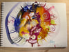 Radiant yellows, magentas, and blues swirl together, held within a circular frame like an aura made visible. Spirals and lines dance across the surface, hinting at chakras, pathways, and the ever-moving pulse of life force. It’s an invitation to look beyond the physical and into the layers of light and information that surround us all.