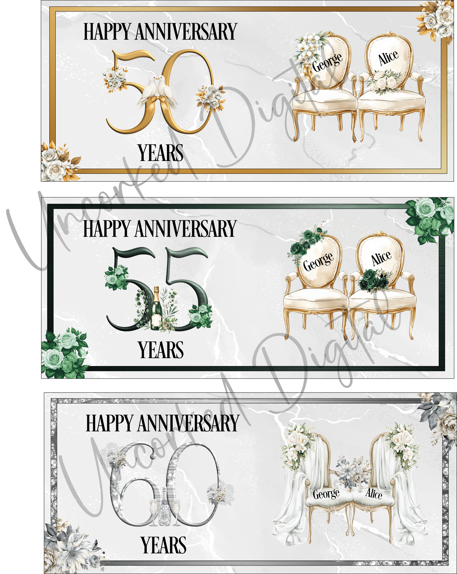 25th, 40th, 45th, 50th, 55th and 60th designs.