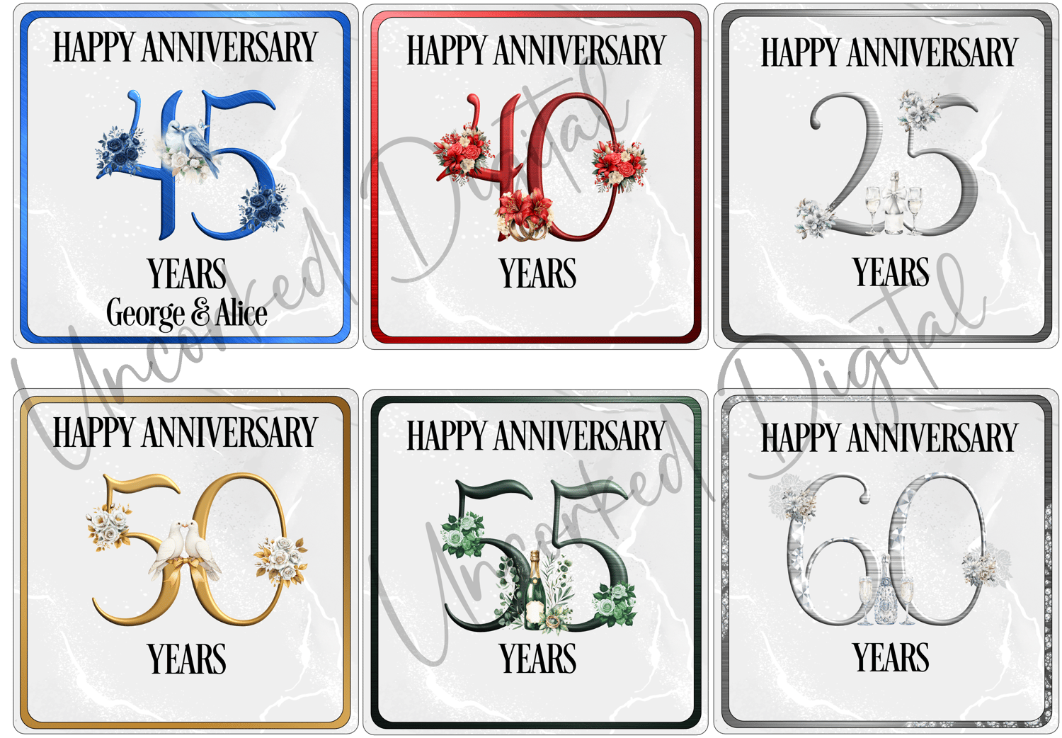 Anniversay 11oz mug wrap and matching 10cm coaster designs