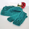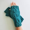 This lovely, textured cable reflects the one used in the matching O Why Knot! cowl, incorporating the O Knot and braids, but with a slight twist. The cable in these mitts emerges from the ribbing at the wrist, weaves its way through the centre and then winds its way back into the ribbing at the fingertips.