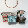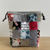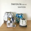 You will receive 12 pages of clear, easy to follow step by step instructions and color photos to make these drawstring bags. Each of the three styles (wholecloth quilted, patchwork, and contrasting bottom) comes in four sizes.