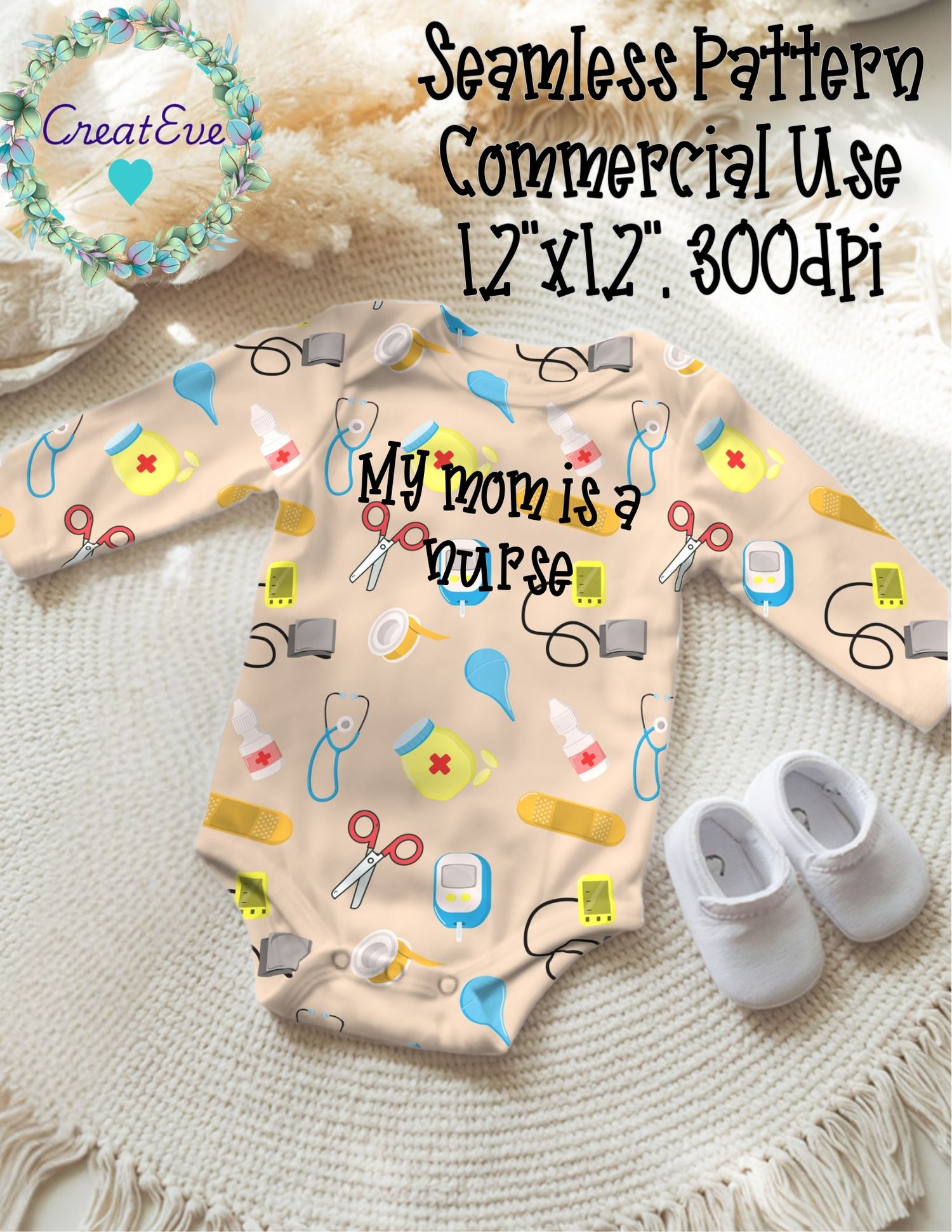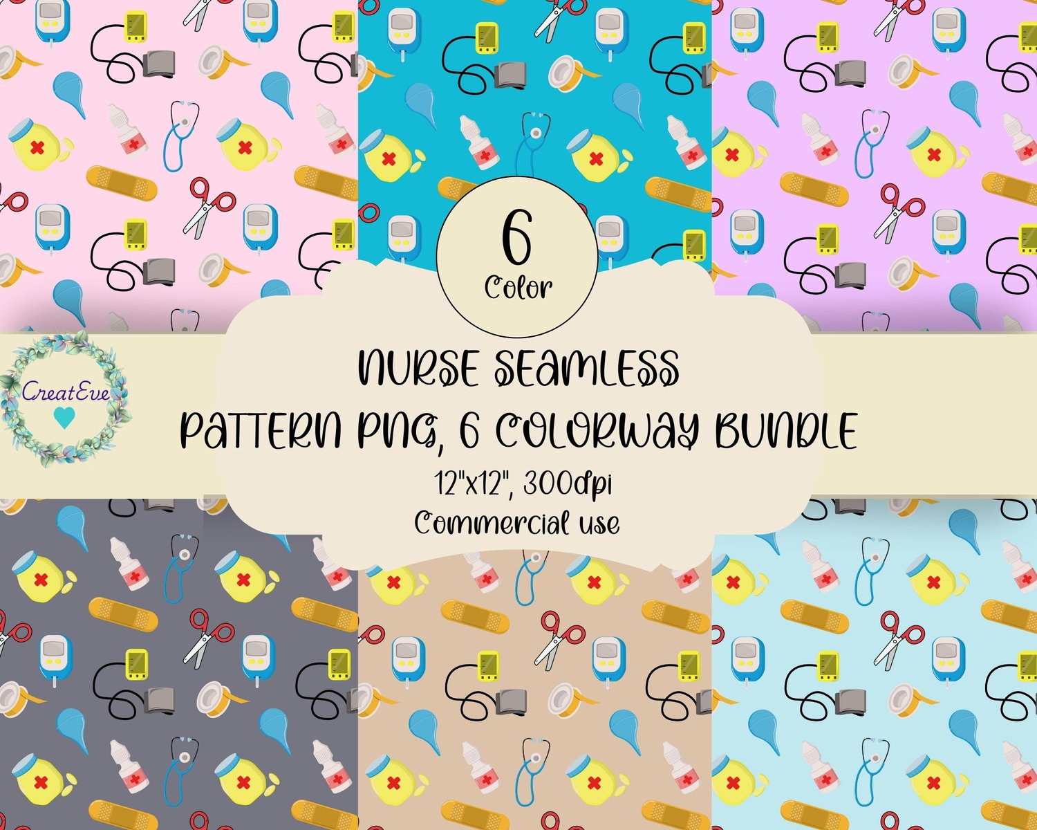 Nurse Seamless Pattern 6 Colorway PNG Bundle 300dpi, 12" x 12"