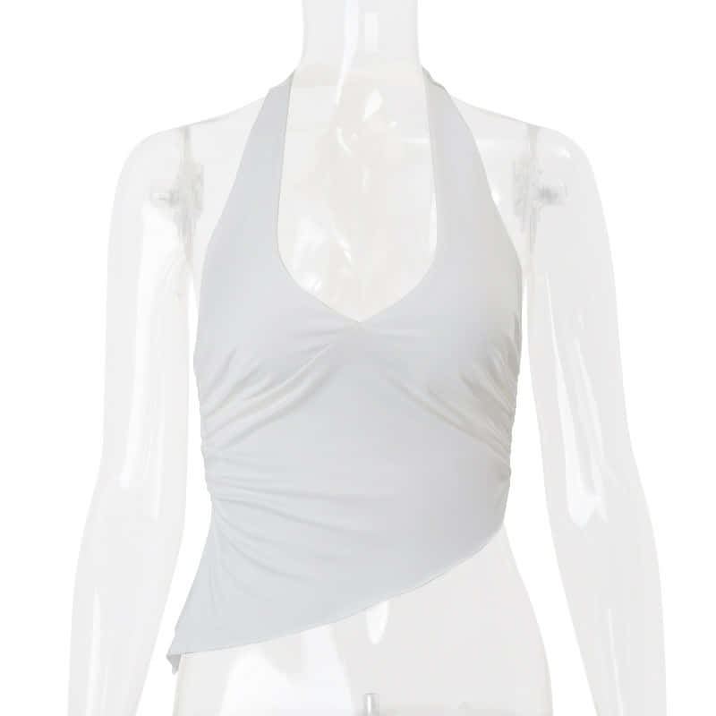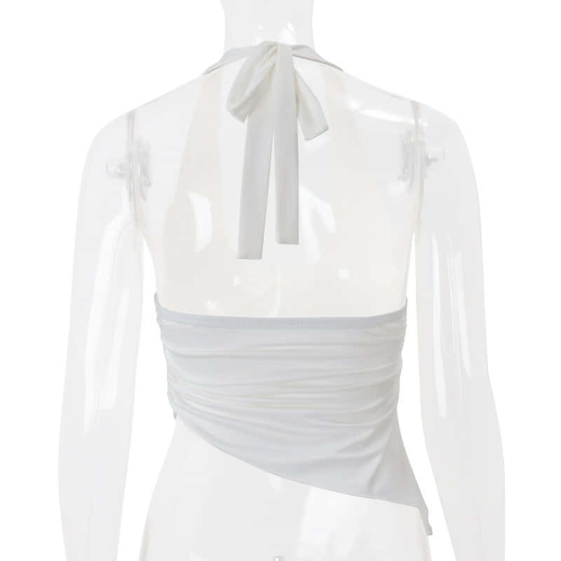 White Elegant Halter Crop Top – Solid V-Neck / Top Halter Blanco Elegante – Escote en V
