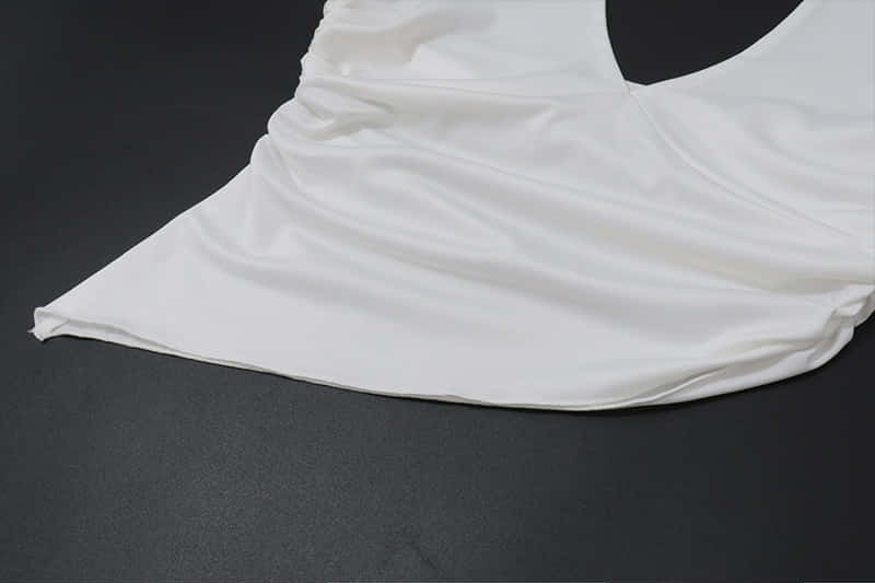 El Top Halter Blanco Elegante es la definición de simplicidad sofisticada. Su diseño de escote en V y corte cropped resalta tu figura con elegancia y confianza. / The White Elegant Halter Crop Top defines sophisticated simplicity. Its V-neck and cropped cut highlight your shape with elegance and confidence.