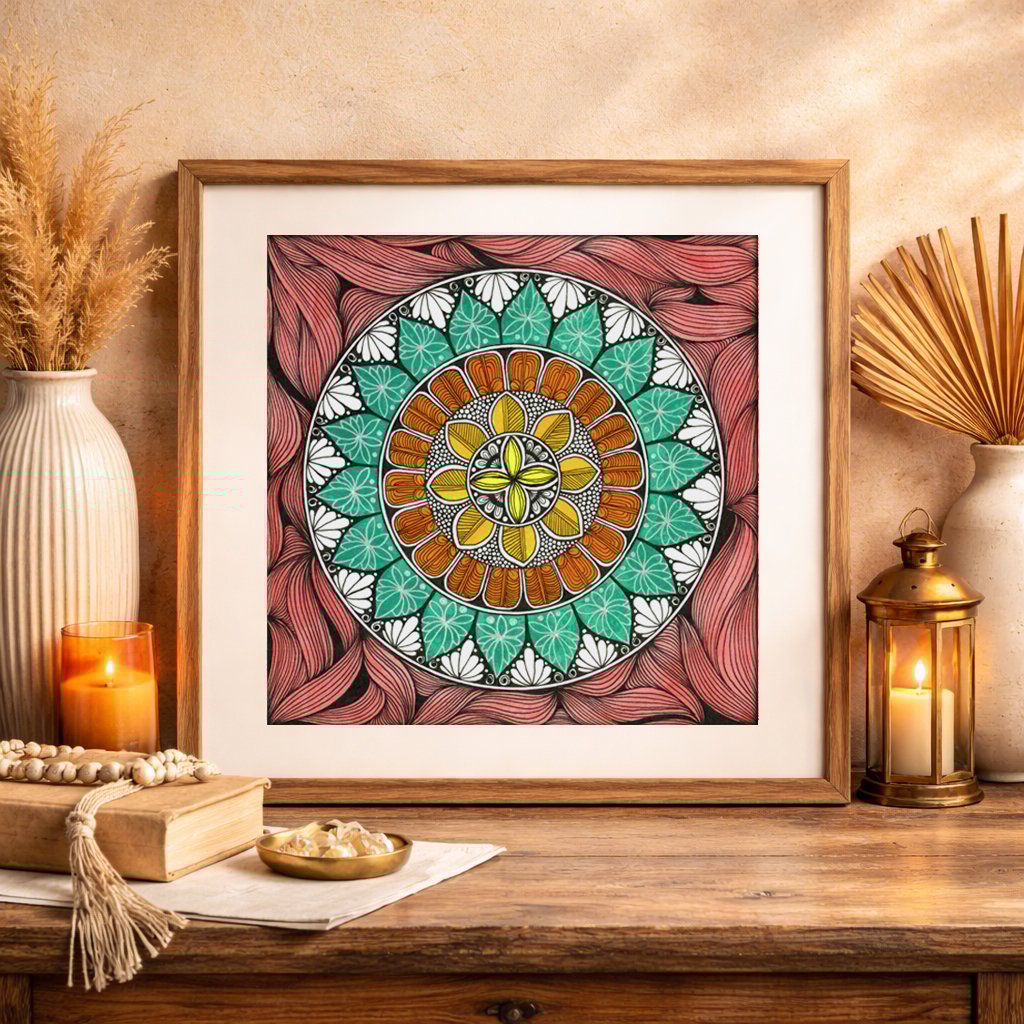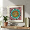 Bring balance, color, and calm into your space with this intricate hand-drawn mandala artwork. Designed with vibrant yet earthy tones, this piece adds a modern boho aesthetic to any room.