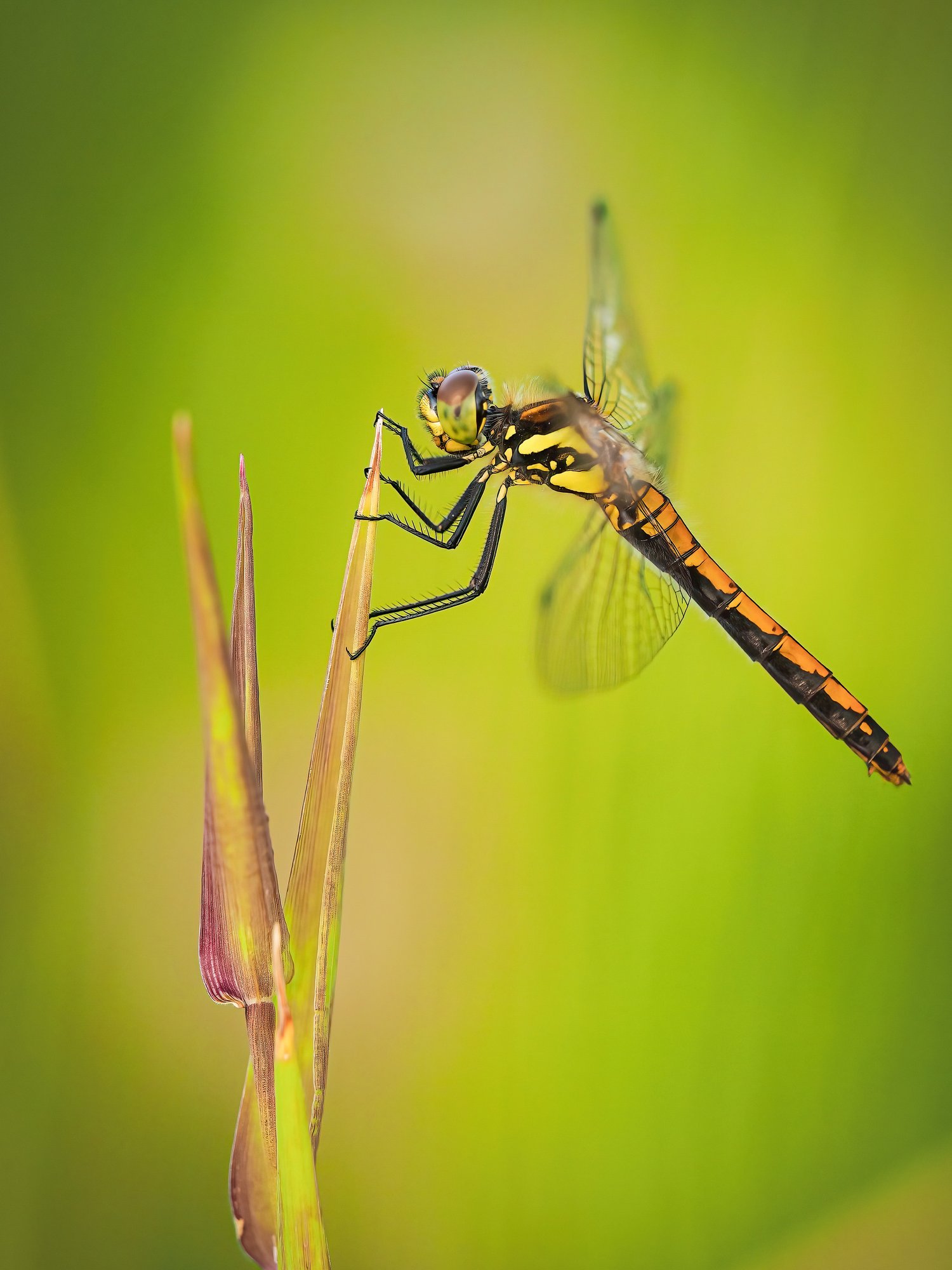 Black Darter dragonfly (Sympetrum danae) is waiting for a suitable prey.