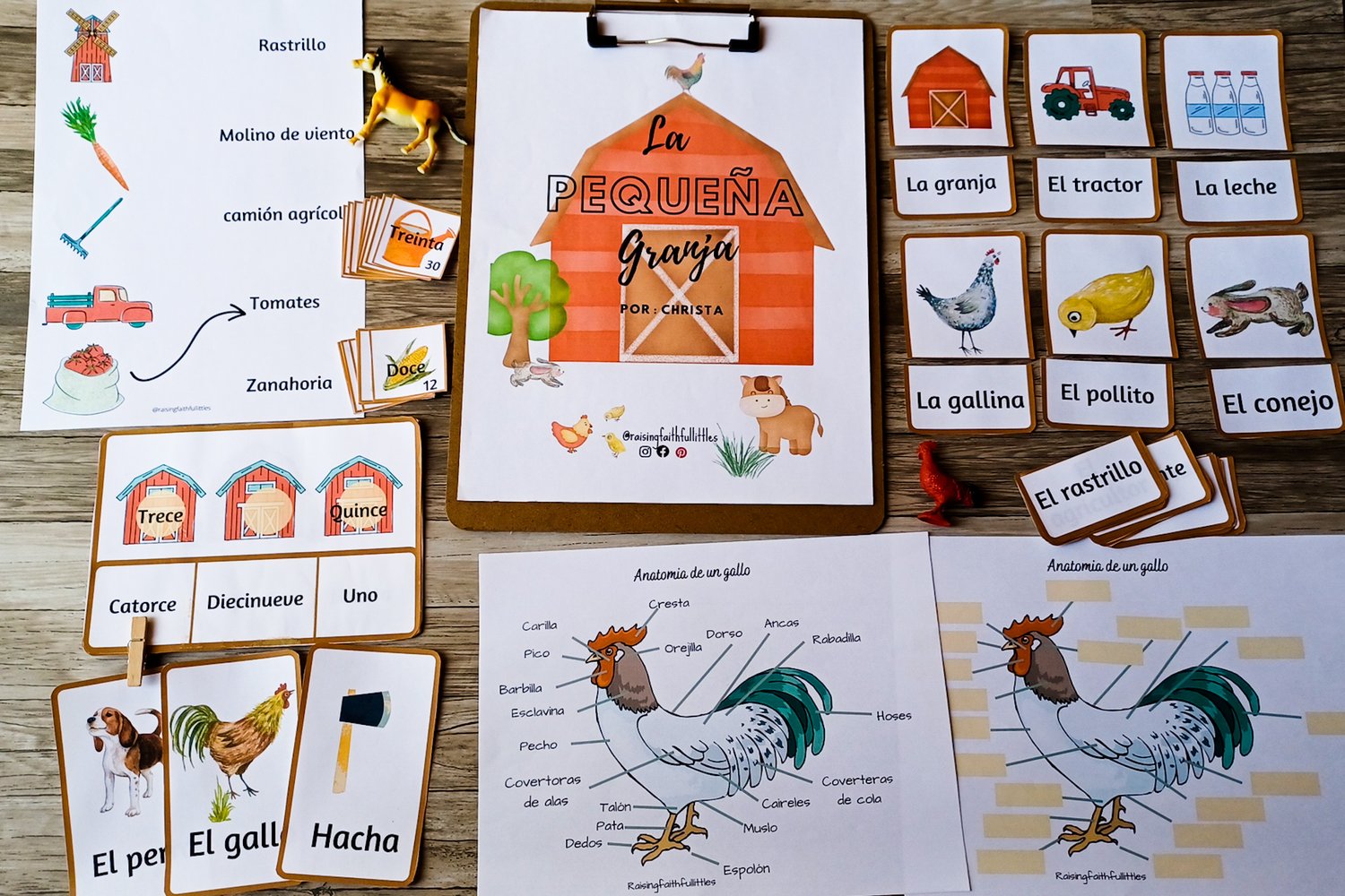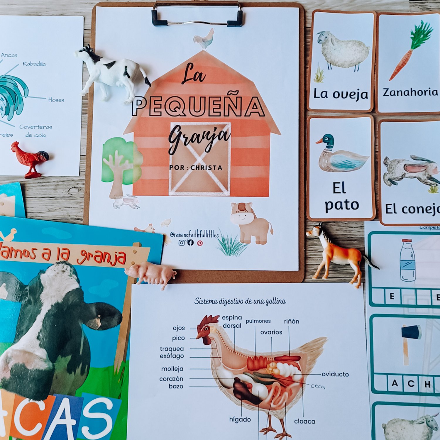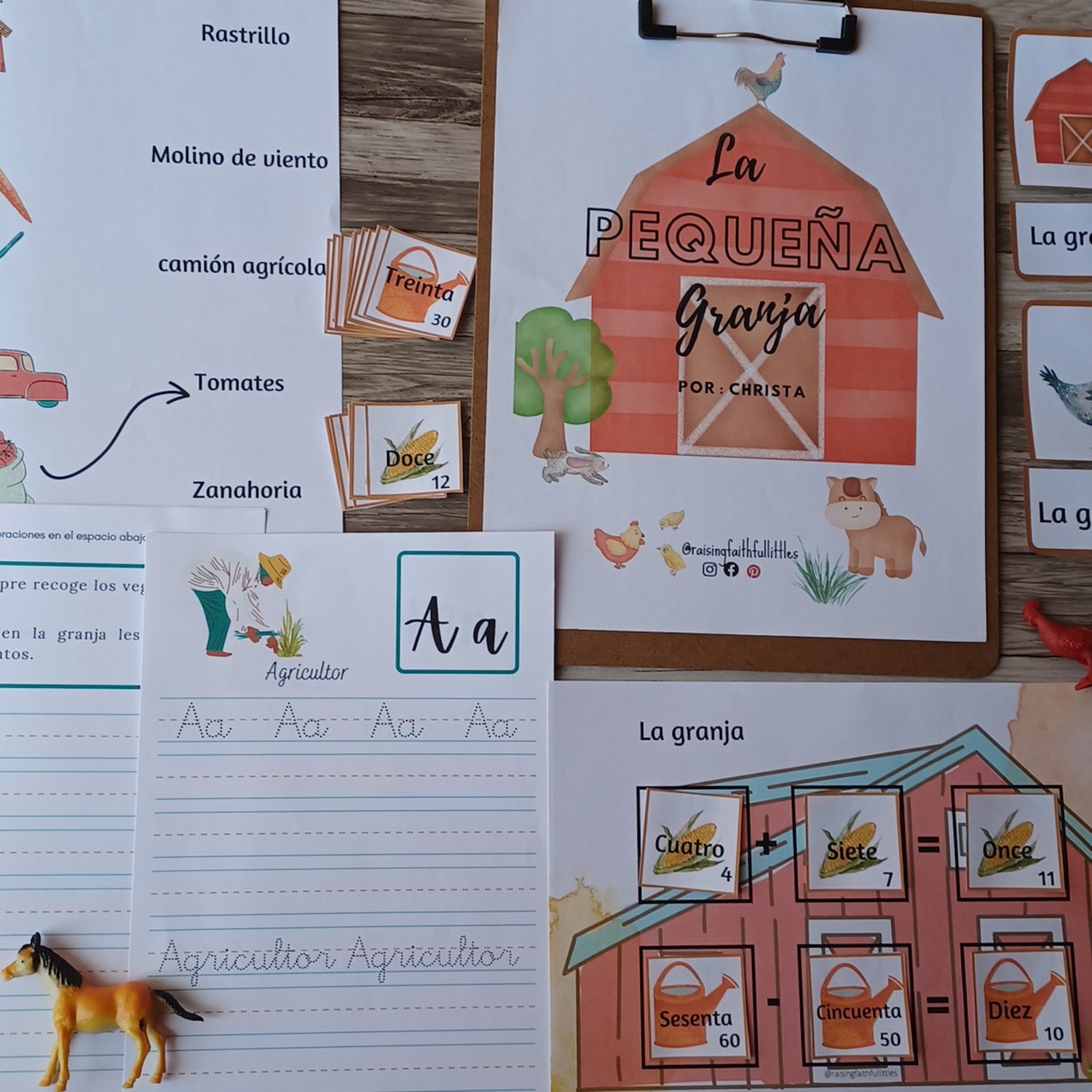 La Pequena Granja learning pack is a bilingual Montessori inspired hands on activity pack, perfectly designed for families seeking to teach their children Spanish at home. Teaching Spanish has never looked so fun. This learning pack is perfect for those who are barely introducing Spanish into their children's life. It comes with many hands on activities such as crafts, anatomy, writing, math, and much more! Take a look below to take a deeper look at what's included.