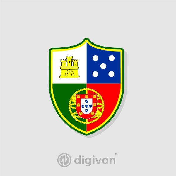 A combination of classic and contemporary styles in one Portuguese shield. Combining castle symbols, modern dots and national emblems makes it unique and eclectic.