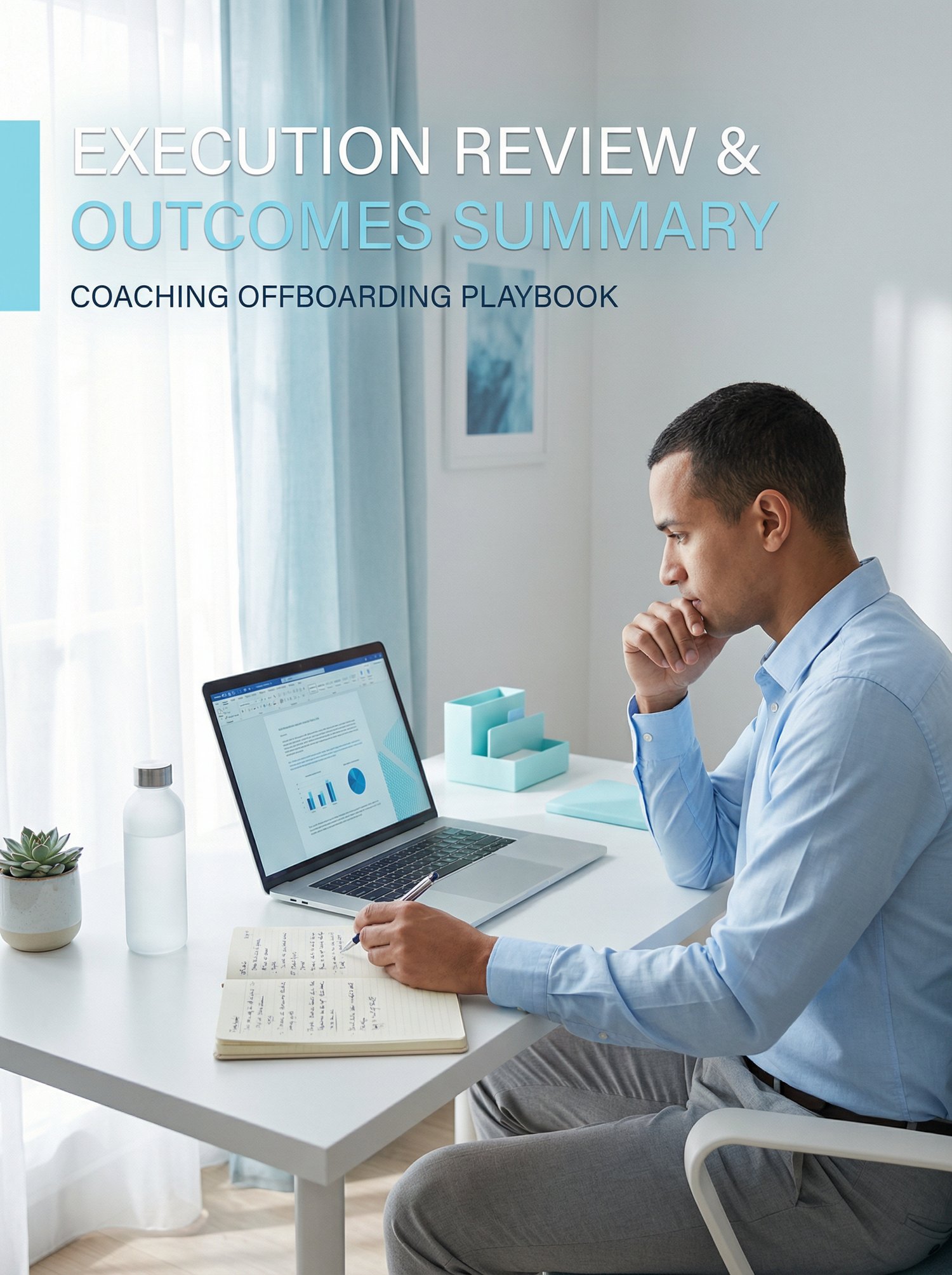 The Execution Review & Outcomes Summary is a structured offboarding playbook designed to document work completed, outcomes achieved, and recommendations going forward.