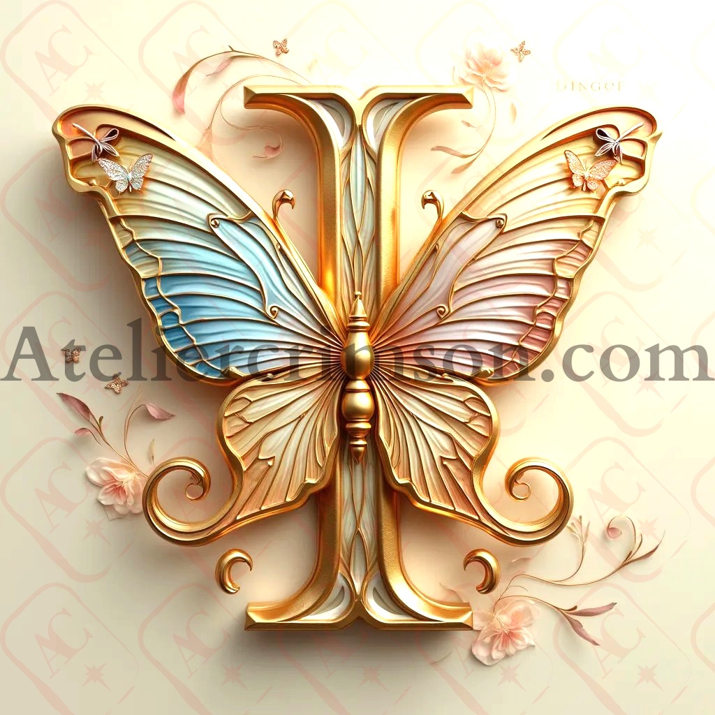 The letter I golden luxury butterfly