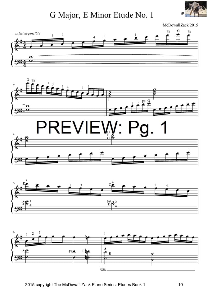 McDowall Zack Piano Etude 1 is an impressive short piece specifically designed to extend scale and chord basics of a major key and its relative minor to a short solo.