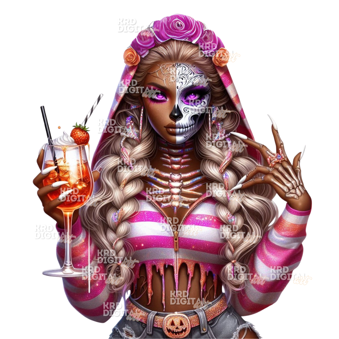 Spooky-cute, retro pin-up vibes for your game-day and fall designs! This single PNG comes with a transparent background and 300 DPI print quality—ready for tees, tumblers, stickers, flyers, and more.