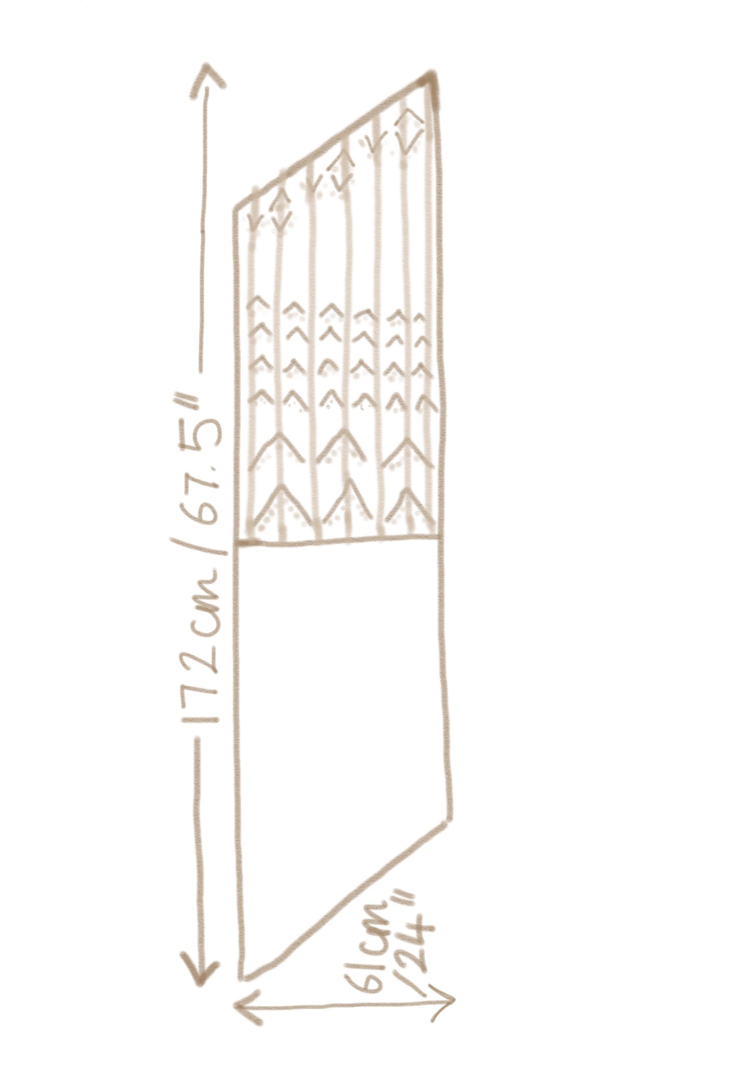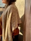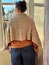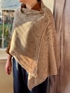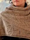 The design is inspired by autumnal silver birch trees (or ‘birk trees’ in Scots), one of the oldest native species in Scotland. It recalls their small fluttering leaves that turn golden yellow and brown in autumn, set against the birches’ slender silver- coloured trunks. These ideas translate into the shawl design through lace sections, interlaced broken rib motifs, small cables that add texture and the strong straight lines created by columns of stitches.