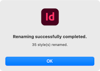 This InDesign script enables comprehensive batch renaming of paragraph, character, object, table, and cell styles using multiple search/replace operations with full GREP pattern matching support. Users can create and manage multiple search/replace pairs, save custom presets, and process styles within specific groups or across entire documents.