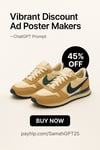 The Vibrant Discount Ad Poster Maker is a simple ChatGPT prompt that helps you design bright, modern sale posters in minutes—no design skills needed!