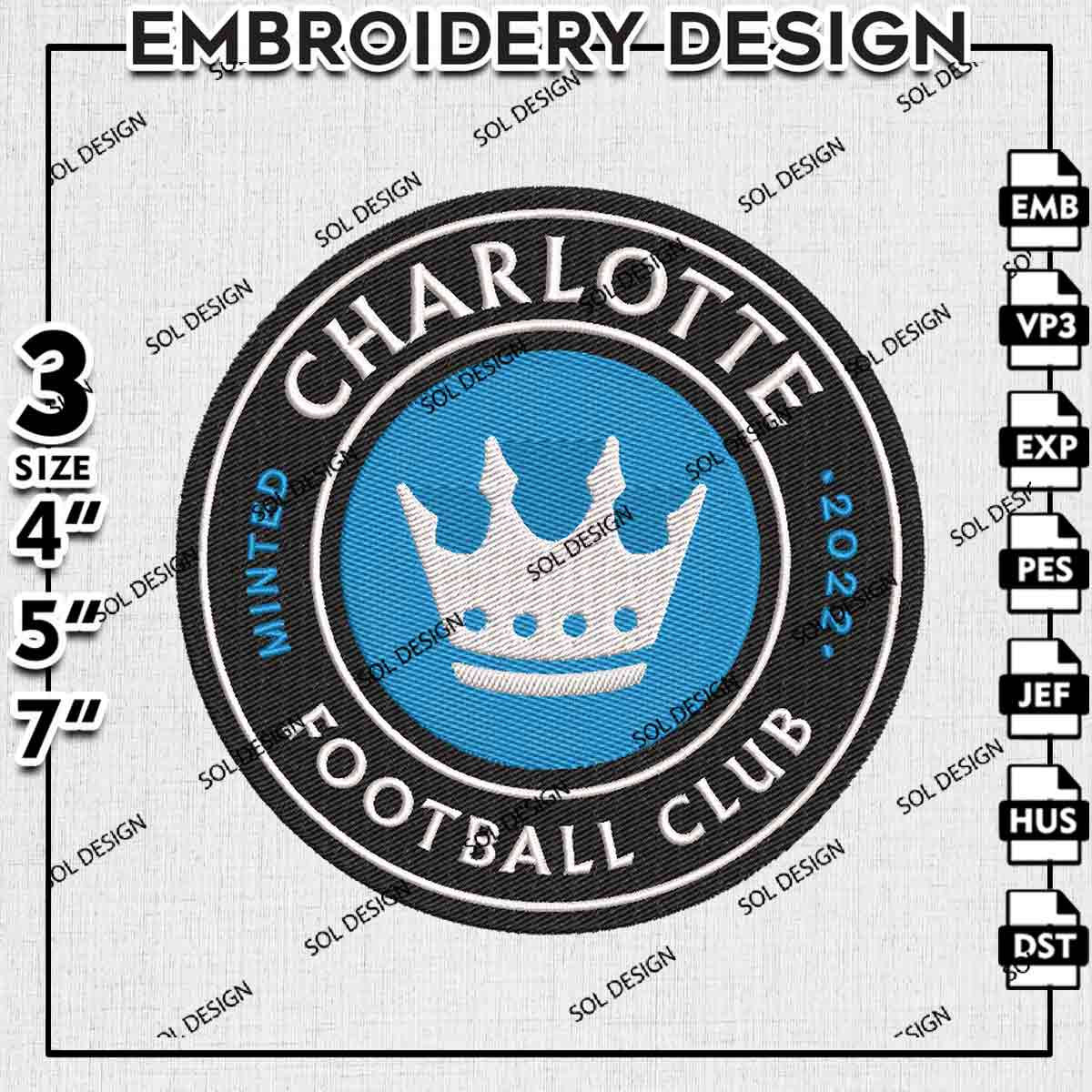 MLS Charlotte FC Soccer Team Logo Embroidery Designs, Charlotte FC Embroidery Files, MLS Charlotte FC Soccer Team Logo Embroidery, Major League Soccer Machine Embroidery Design, Digital Download