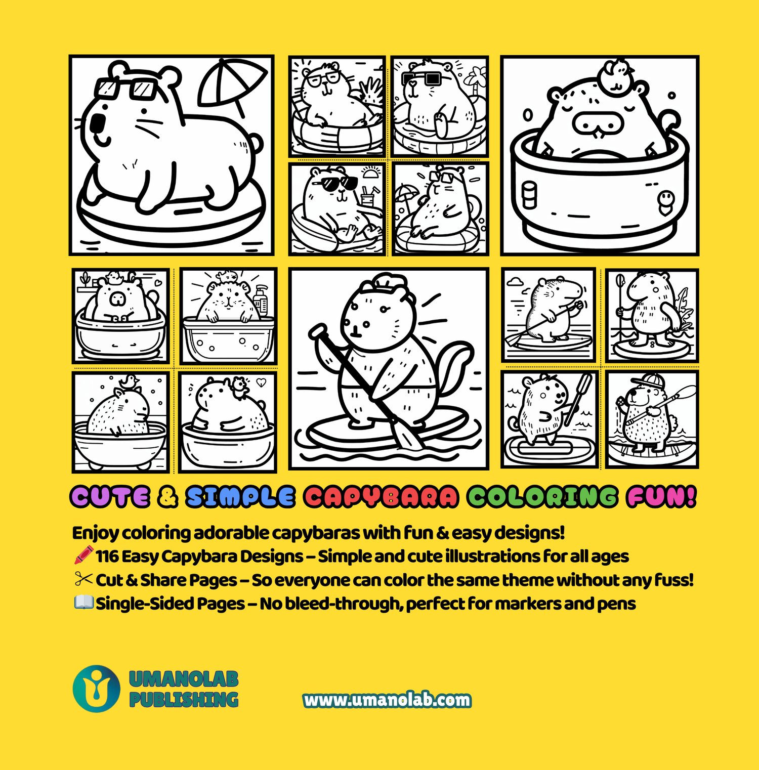 With 116 adorable capybaras across bold, simple designs, it’s perfect for relaxing solo time or creative family moments. 22 pages include 4 smaller illustrations on each page—great for sharing among siblings, friends, or creating themed mini collections. The rest of the book features large, single illustrations for more focused, expressive coloring.