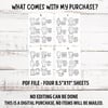 - (4) 8.5" x 11" Sheets with 24 Different Designs