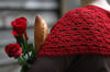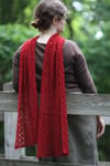 I looked up the individual concepts for bread, roses, and labor unions in the Dewey Decimal System (used to catalog books in many libraries in the US) and then placed the numbers on a grid as a starting point for designing this lace. The yarn overs in the alternating columns of lace in the middle are placed based on bread and roses; the border is generated with the numbers for labor unions. Decreases were placed to form undulating lines; occasional two-stitch cables highlight this effect.