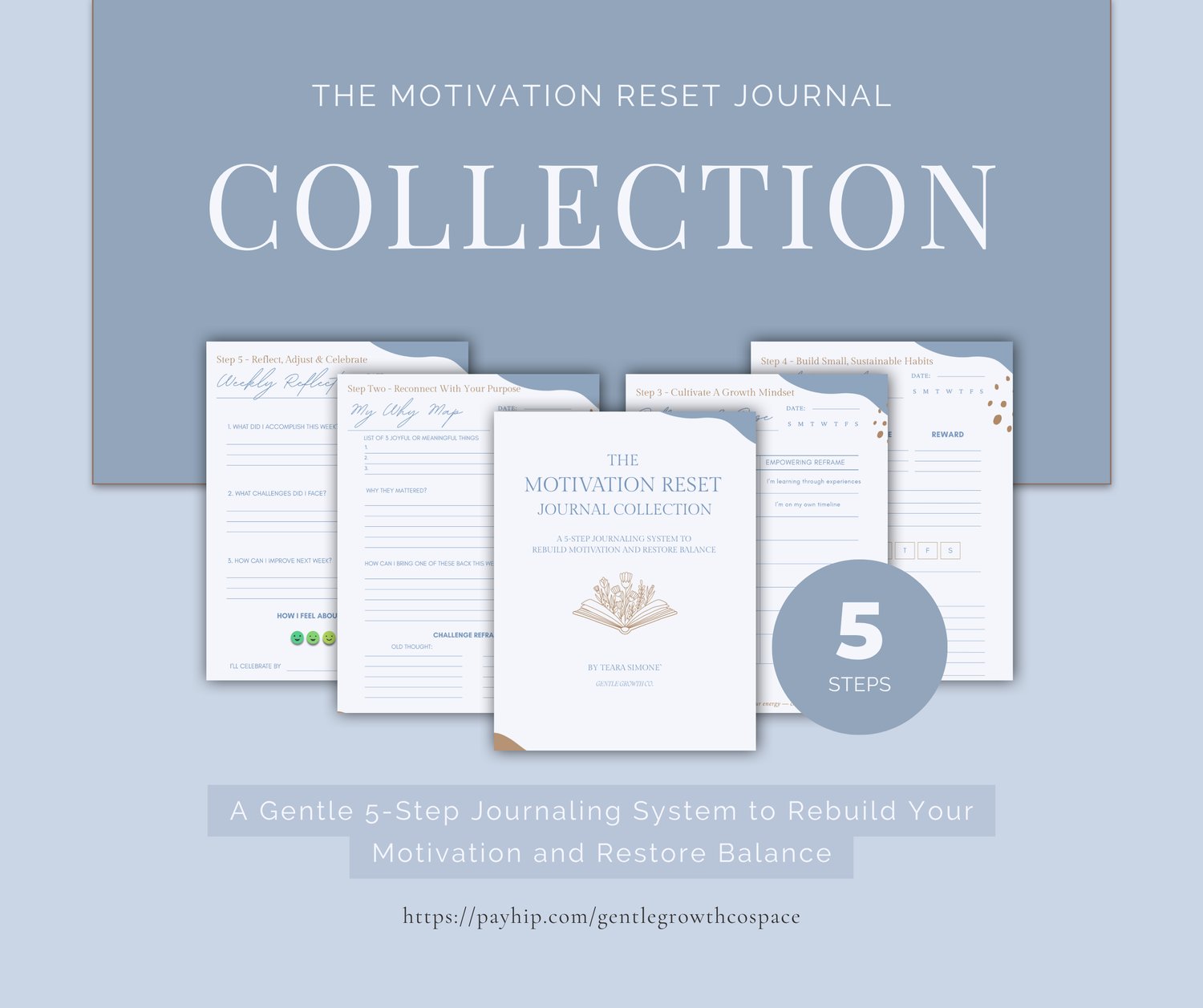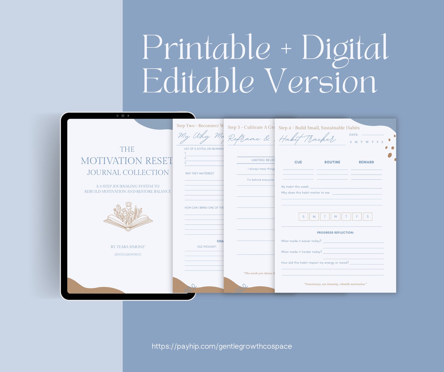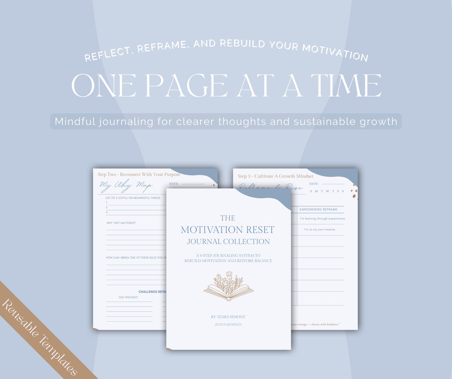 Designed to pair with A Gentle Reset: 5 Steps to Rebuilding Motivation, this collection guides you through the exact steps needed to reflect, realign, and create meaningful progress at your own pace. Each page is structured, intentional, and reusable—whether you prefer digital journaling or writing by hand.