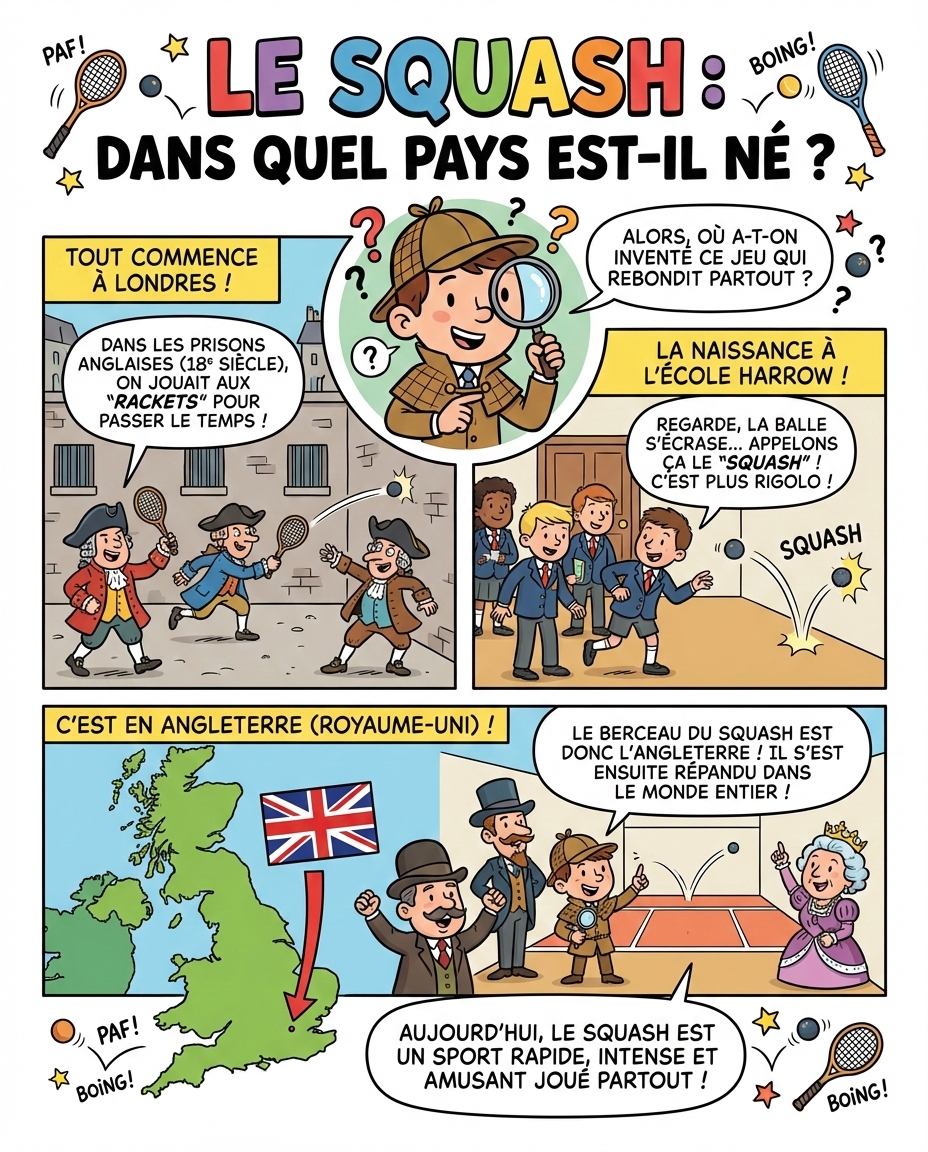 Cette ressource présente un sport entièrement en français à travers une série de pages infographiques au style clair et dynamique inspiré de la bande dessinée franco-belge.