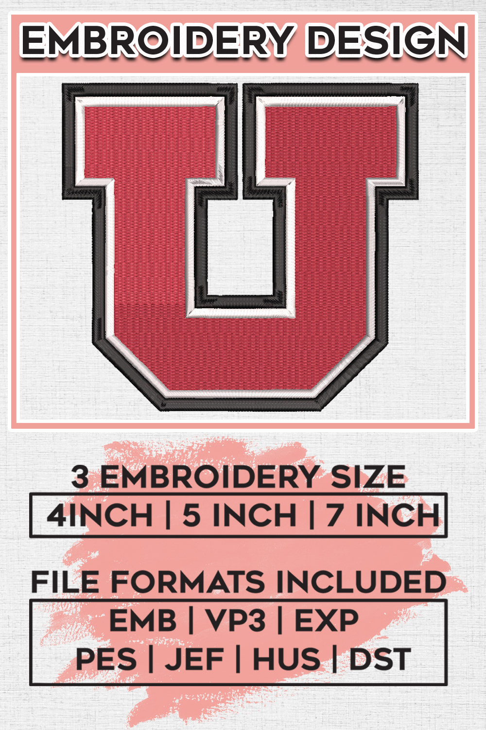 NCAA Utah Utes College Football Team Logo Embroidery Designs, NCAA Utah Utes Machine Embroidery Files, NCAA Logo embroidery designs, NCAA Utah Logo, Digital Download