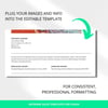 - 37 total templated pages to create your available artworks package, including options for horizontal, vertical, and square artworks; biographical information; artwork information, press clippings; contact information; and sales / payment info.