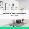 Create your own package to showcase and sell your available artworks using Canva templates designed specifically to professionally present artwork. These templates help you make an "available works" list quickly and easily so that you can reply faster to inquiries – with an elegant, informative package on you and your work.