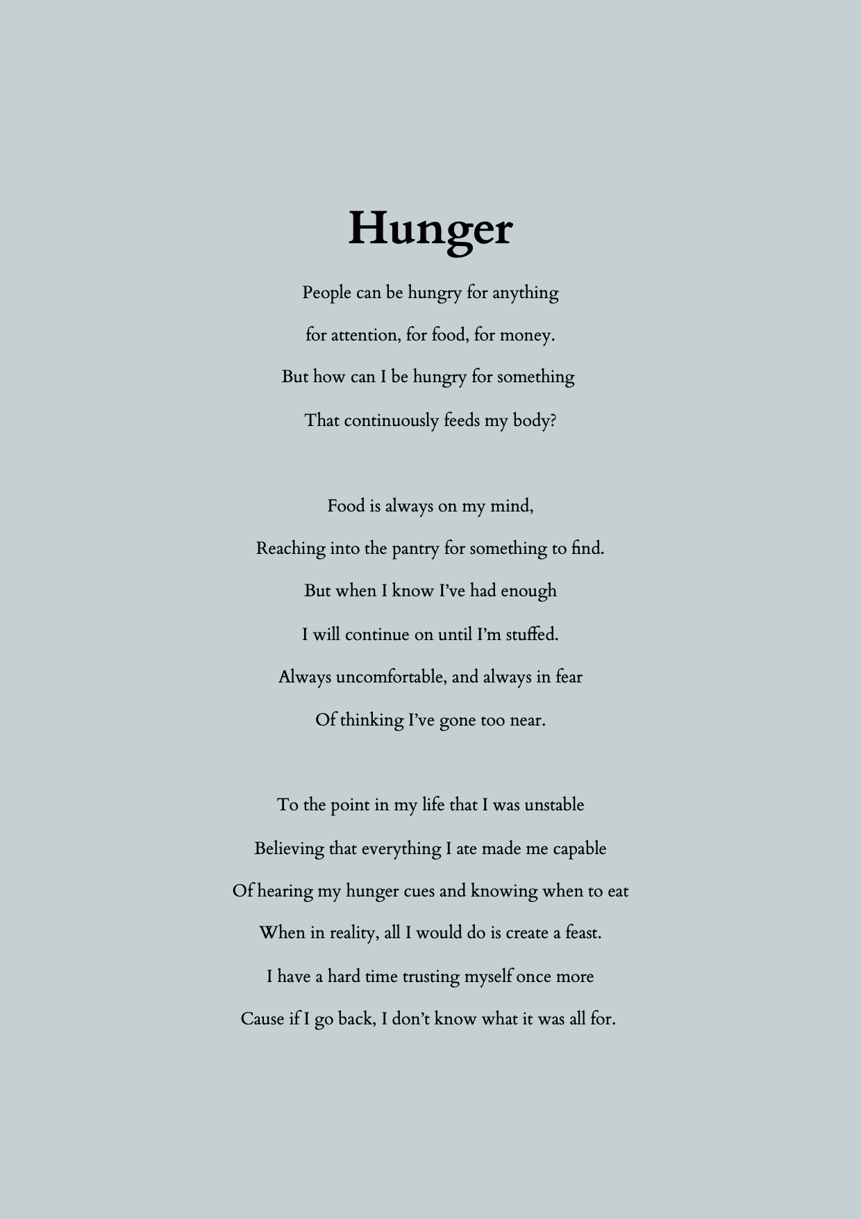Hunger makes you human. It is part of survival, and no one should forget that.