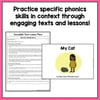 Aligned to the Science of Reading, these materials help students build foundational literacy skills through systematic phonics practice and high-frequency word exposure in meaningful context.
