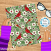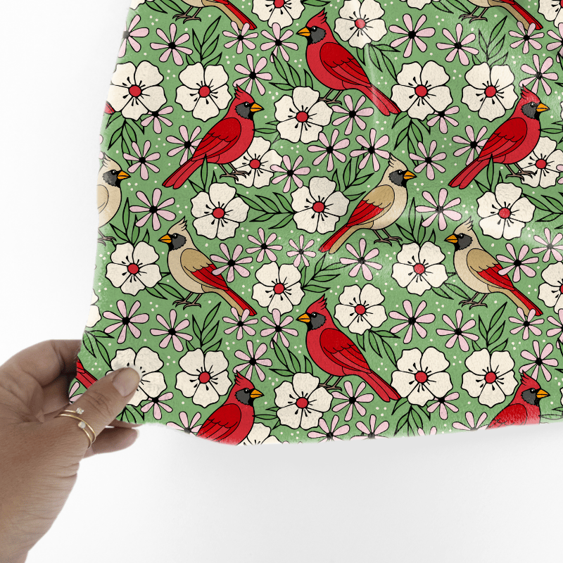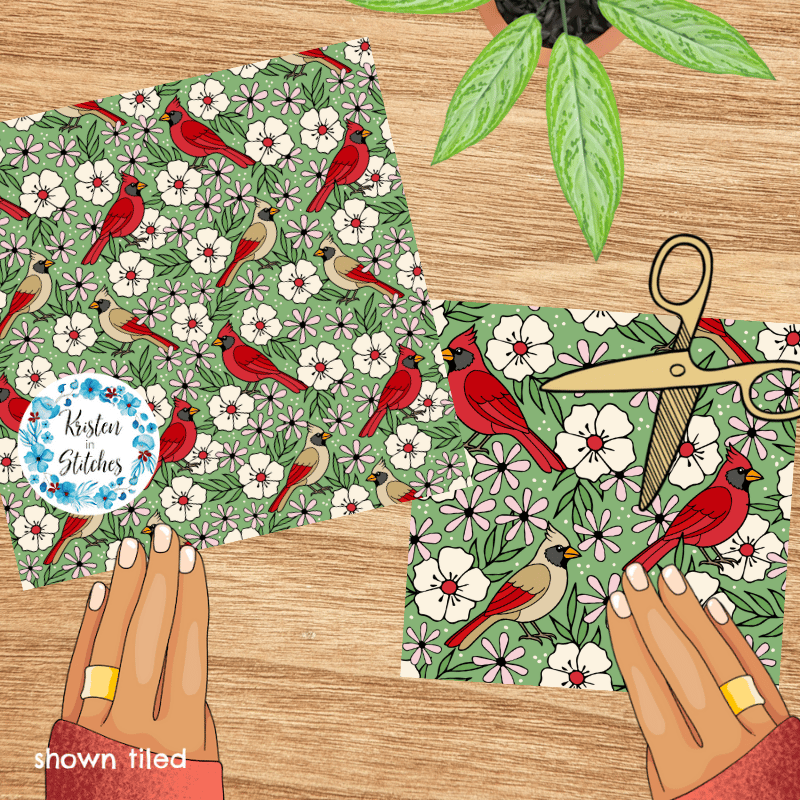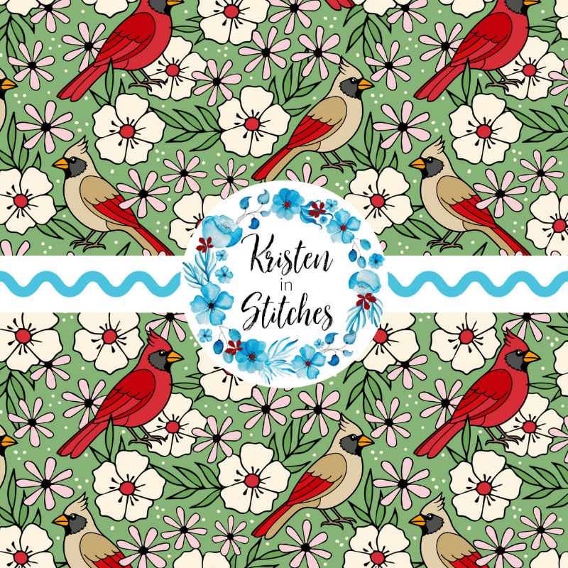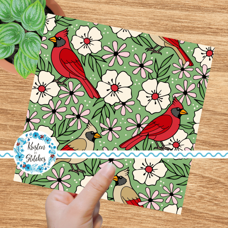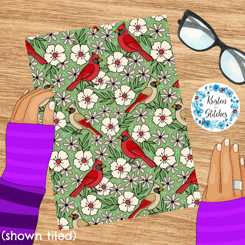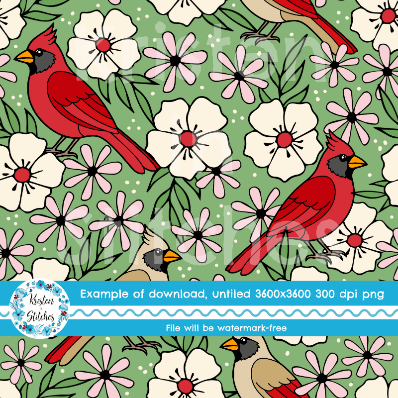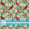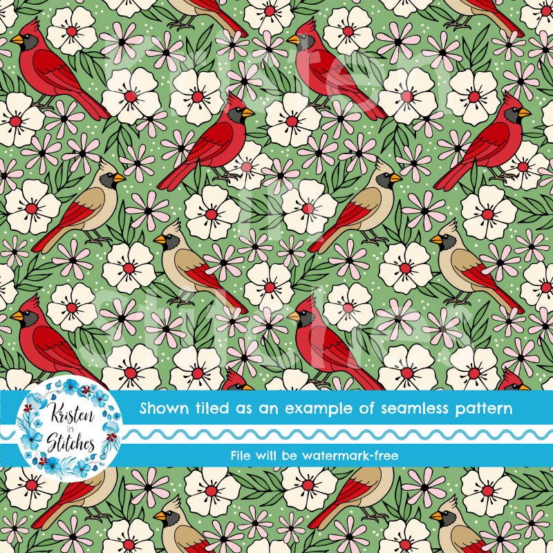 Red Cardinals Male Female Birds and Flowers Seamless Pattern