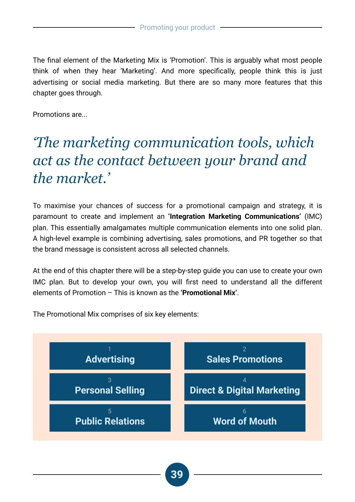 - You will learn how to build promotional campaigns that include advertising, digital marketing, sales promotions and many more strategies
