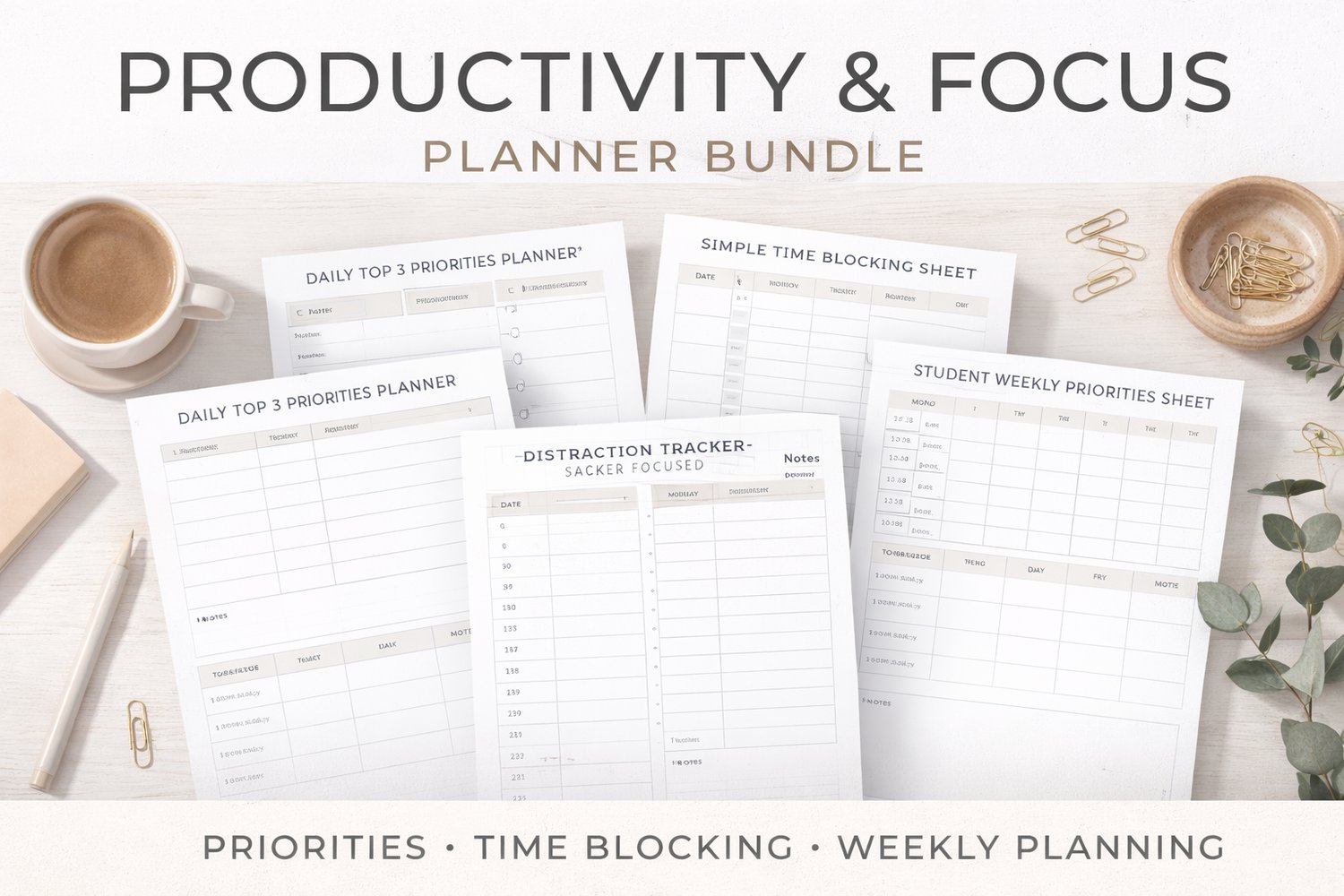 Productivity & Focus Planner Bundle – Priorities, Time Blocking & Weekly Planning