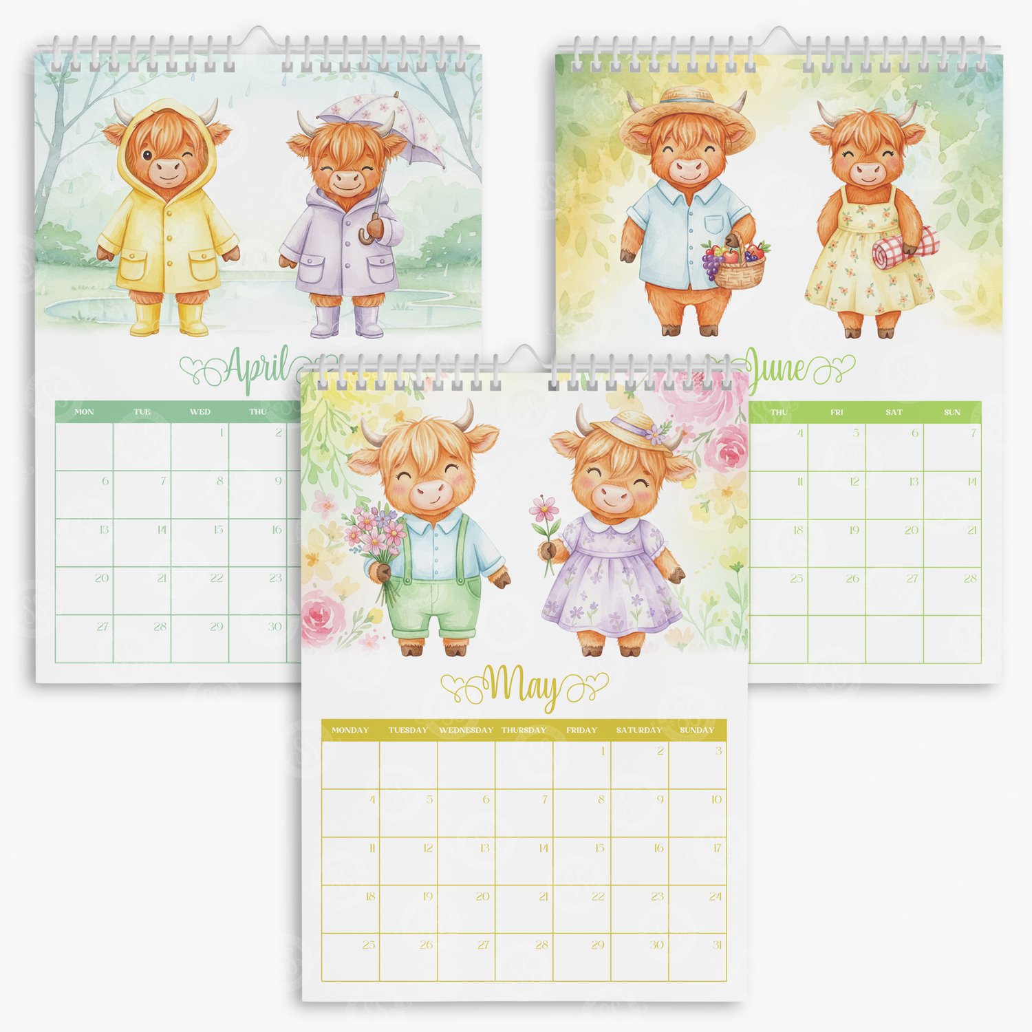 Seasonal Highland Cow Couples A4 2026 Calendar Bundle