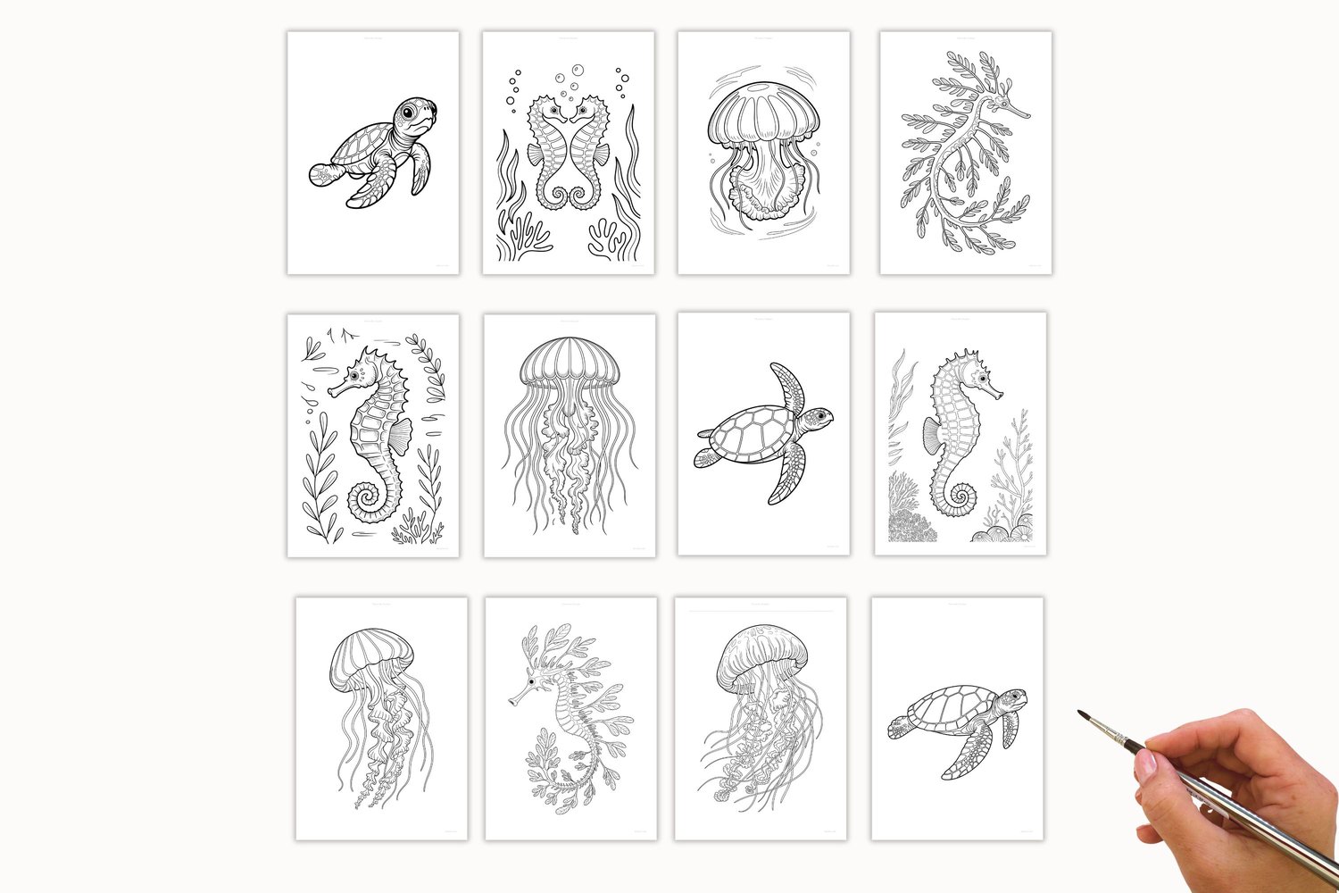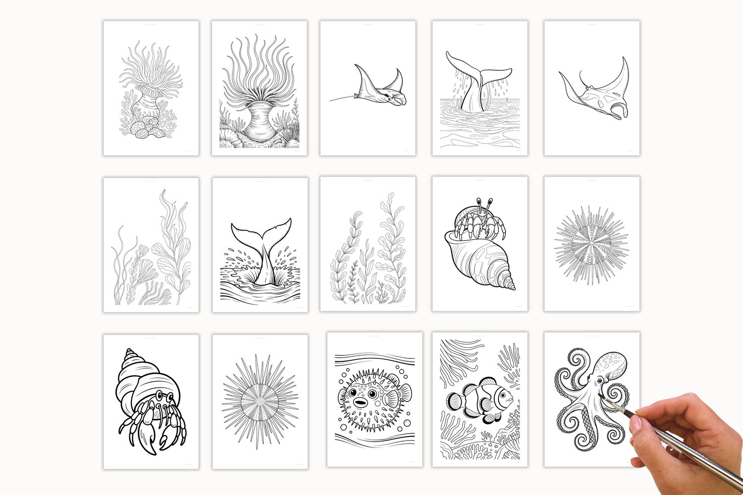 Dive into a stunning collection of 42 hand-drawn ocean life illustrations — ready to print, trace, paint, and color.