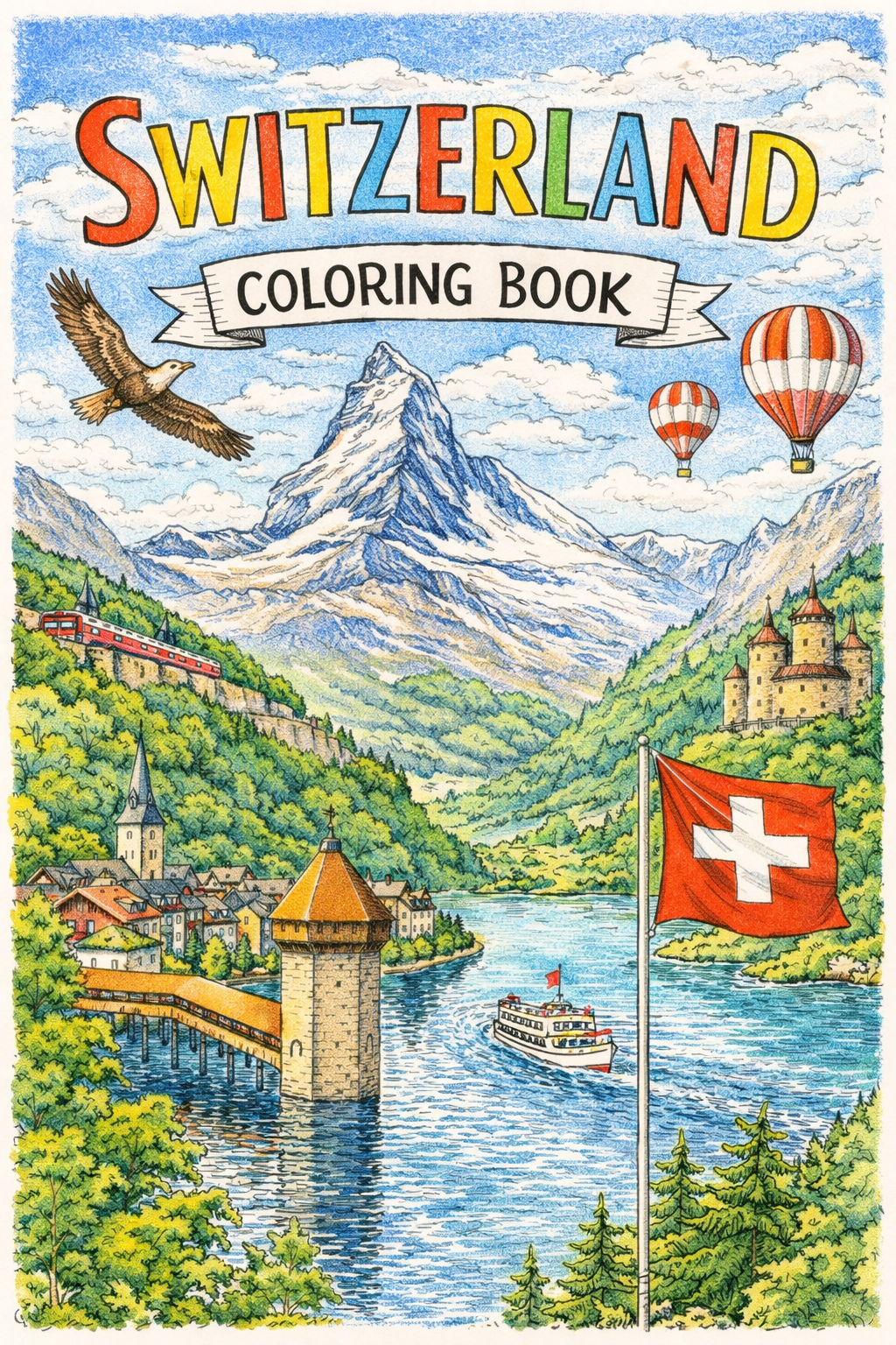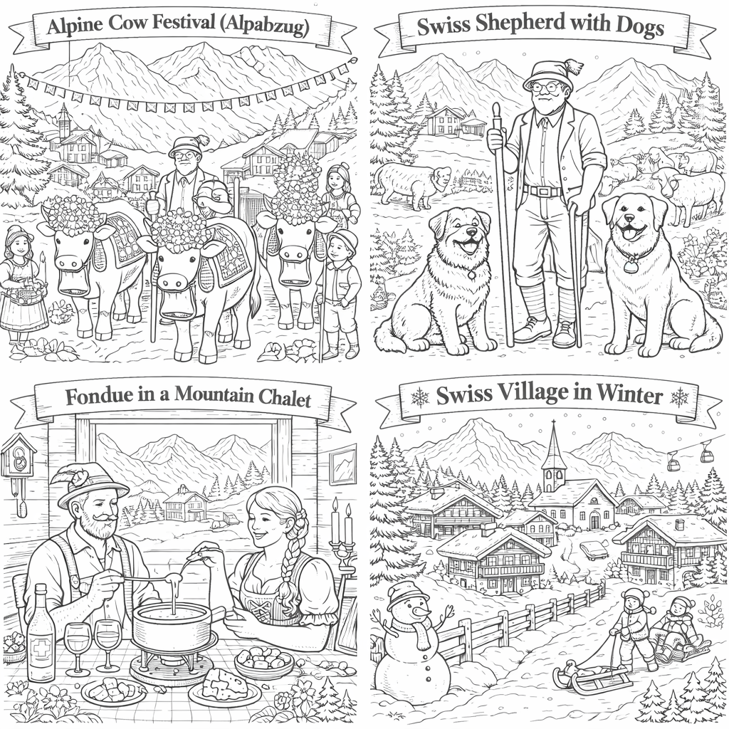 Switzerland, 55 designs, coloring ebook, digital printable product, instantly download