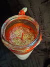 Honor the sacred cycle of life and death with this vibrant Ofrenda candle. Adorned in gold and red, this candle is charged to serve as a beacon of light and remembrance on your altar from October 31st to November 2nd. Use it to lovingly guide the spirits of your ancestors and departed loved ones, celebrating their memory and the eternal bond that transcends the veil.